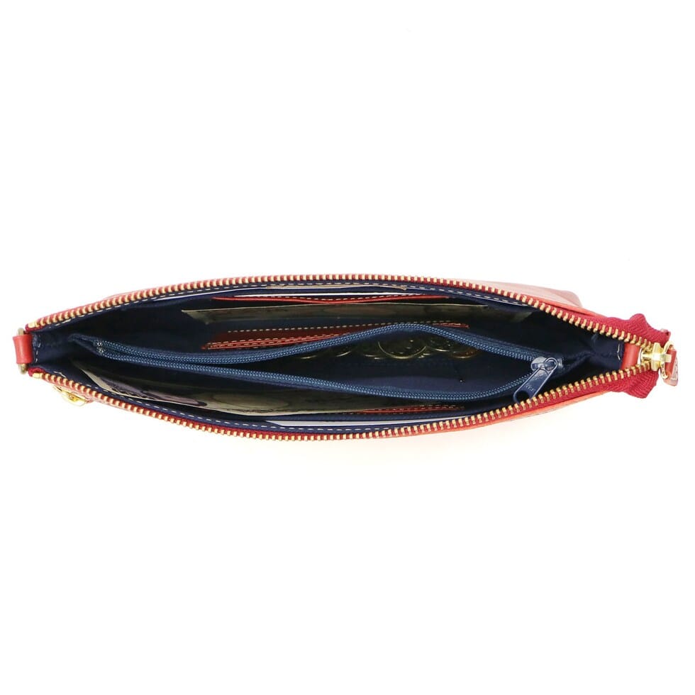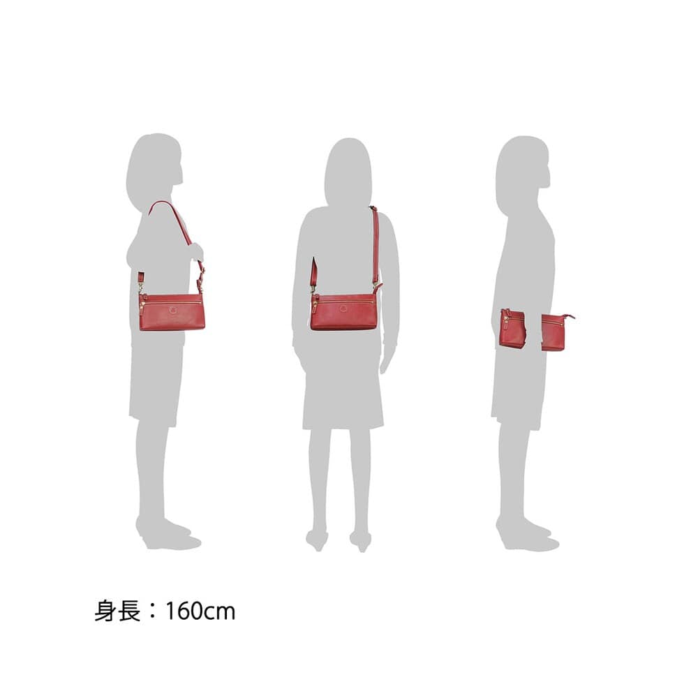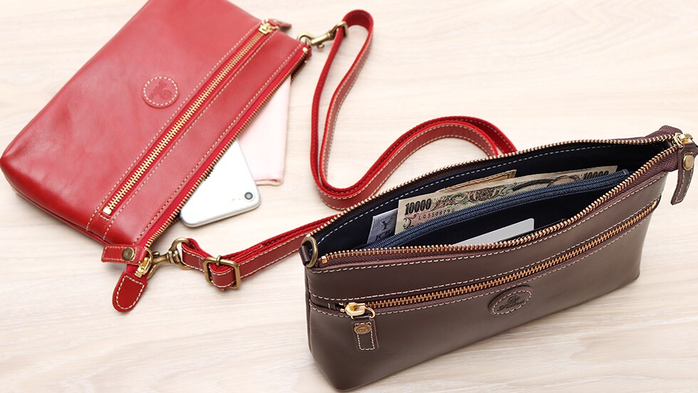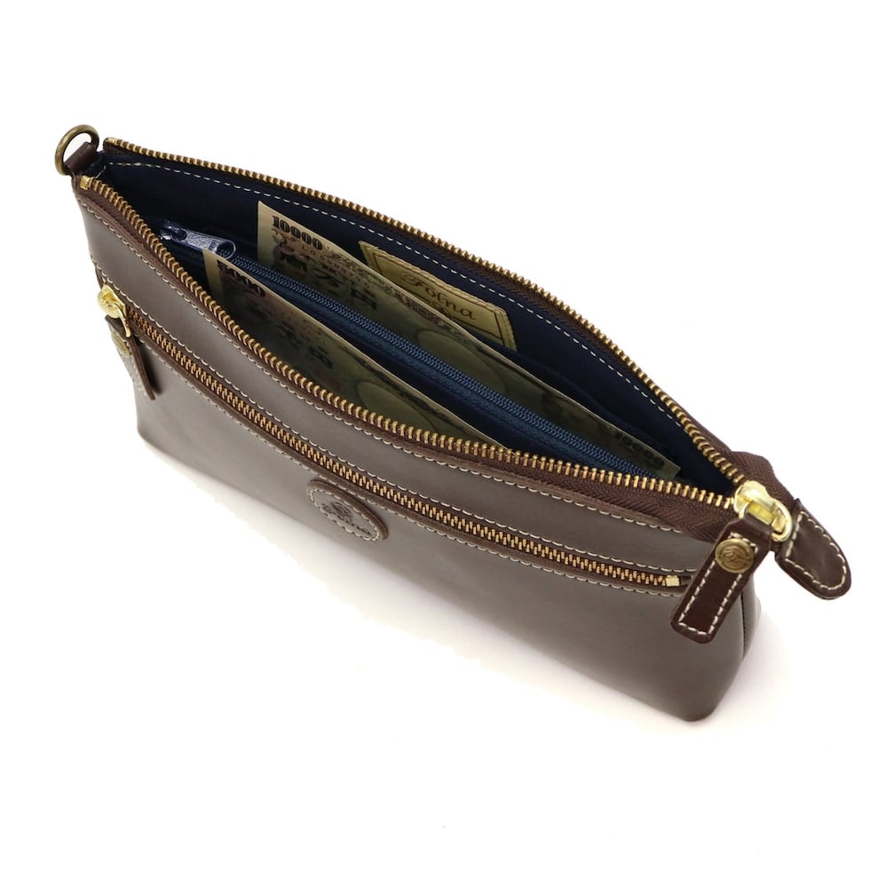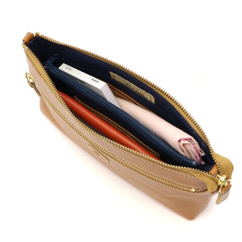 内部にはお札や小銭を管理するスペースに加え、カードポケットも8ケ所、フリーに使えるポケットを2ヶ所設けたつくりになっています。マチ幅も適度に設けられ、お財布も収納可能なので用途に応じて、コンパクトなショルダーバッグとしてもお使いいただけます。
