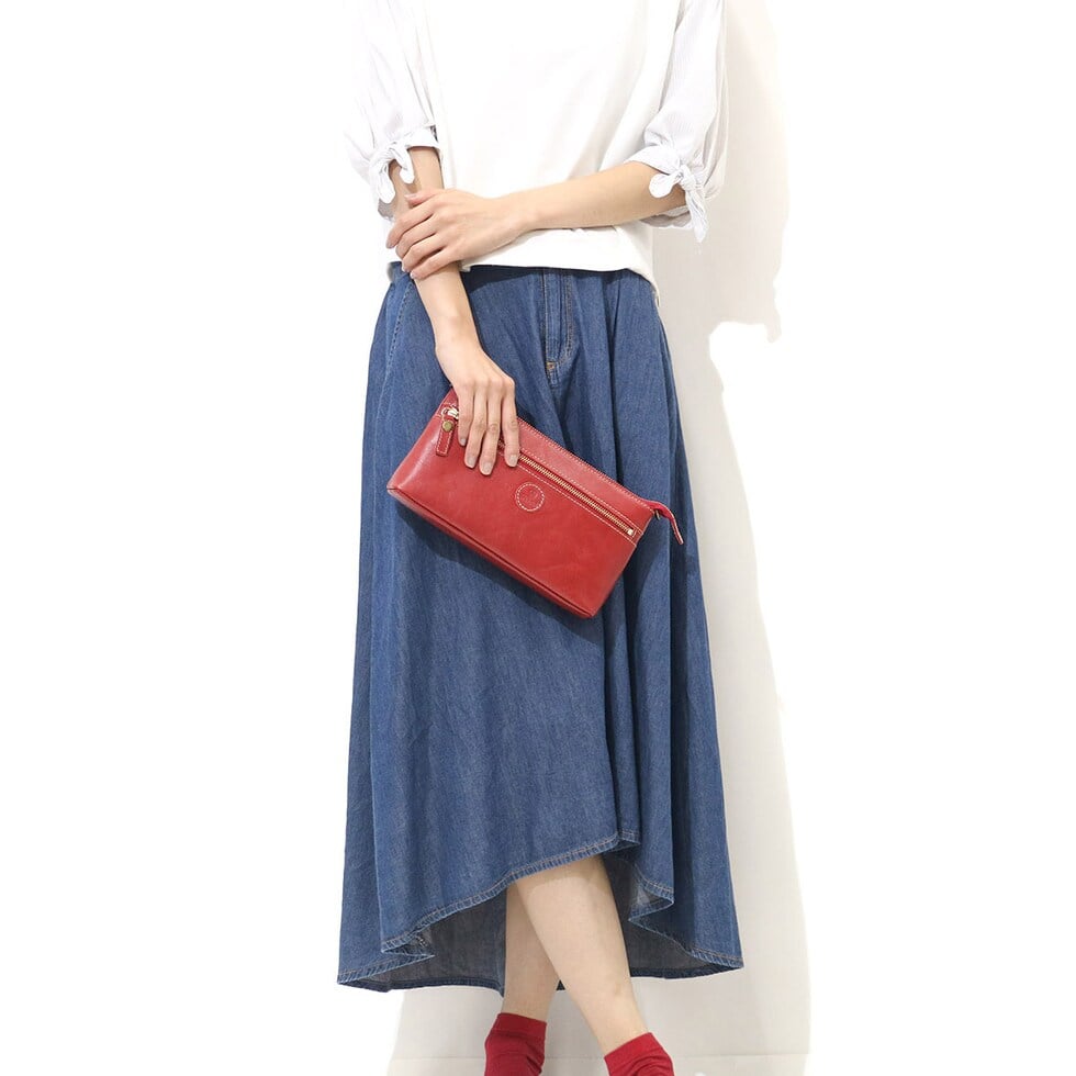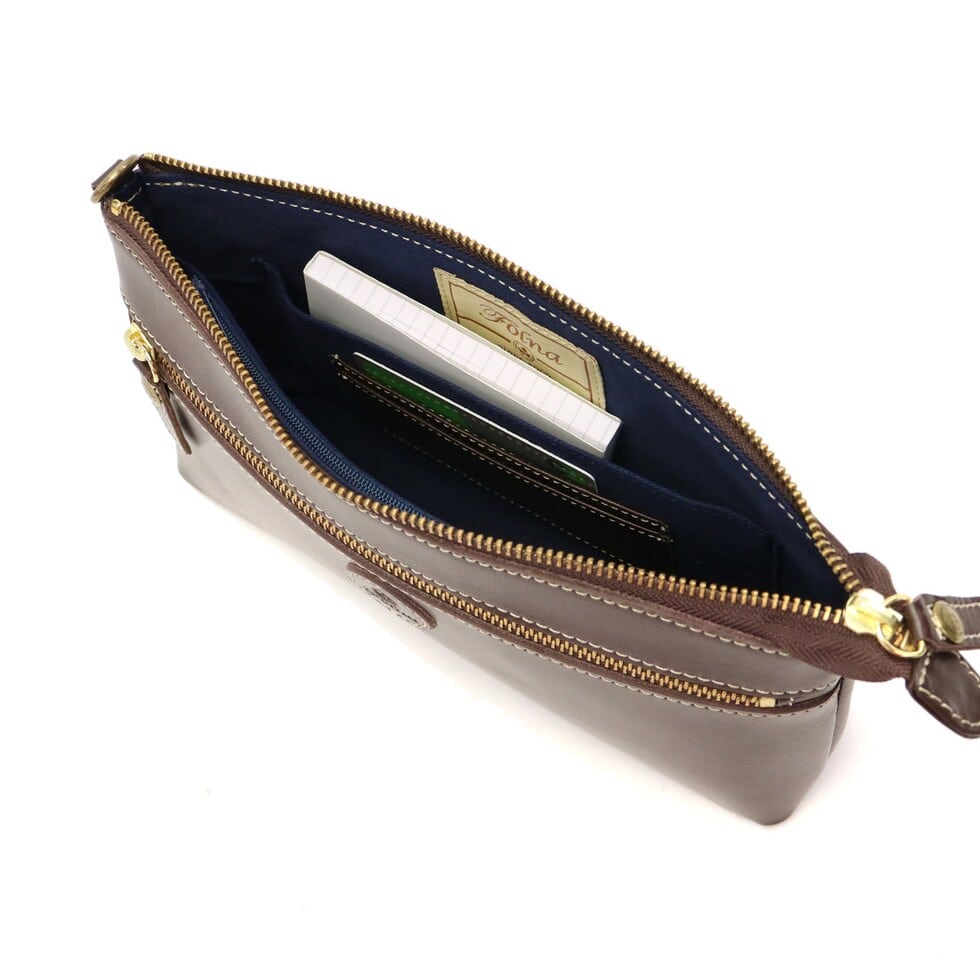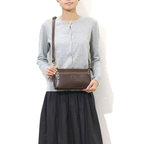 上質な牛革を使用した「Folna」のお財布ショルダー。バッグ本体にお財布機能を装備し、一つあると身軽にお出かけしたい時や旅行の観光などに活躍します。シンプルなデザインと落ち着いたカラーバリエーションで、きちんと感もしっかりとあり、フォーマルシーンにクラッチとしてお使いいただくこともできるアイテムです。