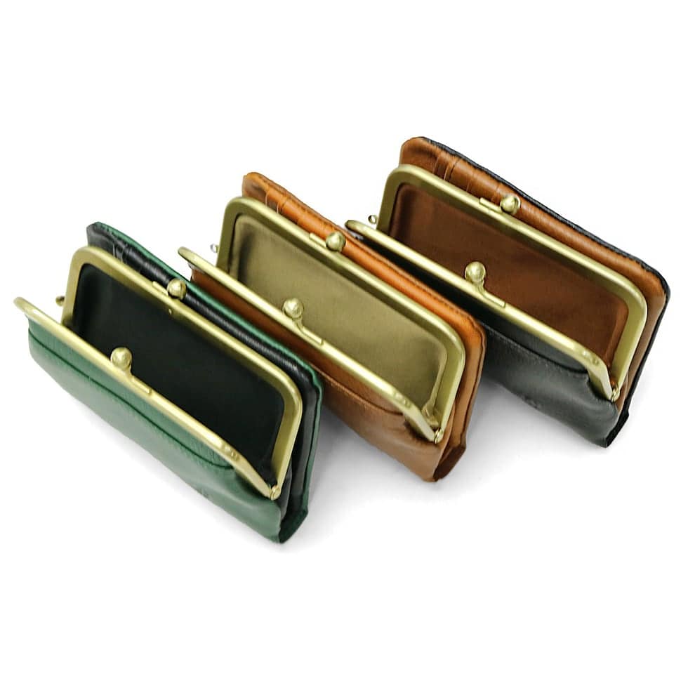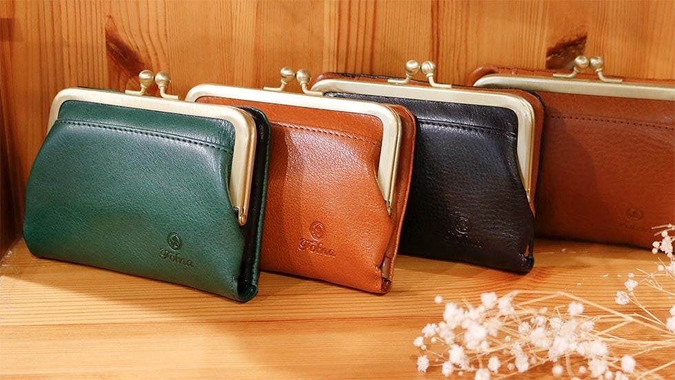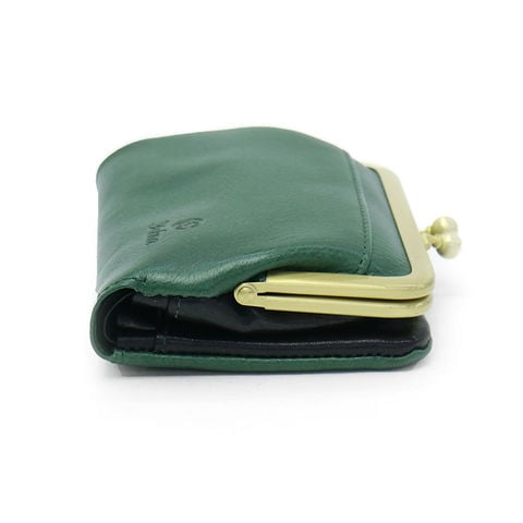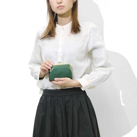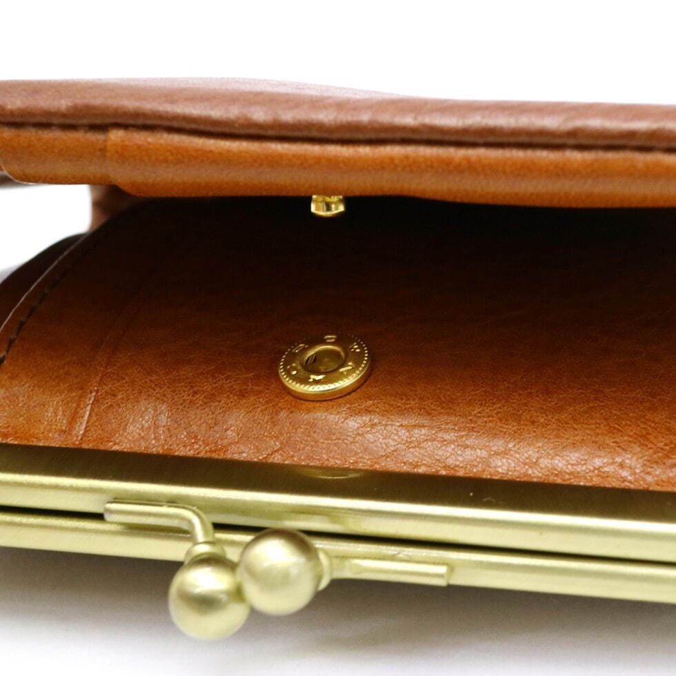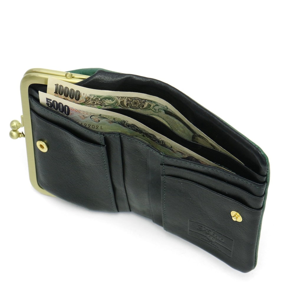 しなやかな手触りが魅力の牛革を使用した二つ折りタイプのがま口財布。丸みのあるフォルムが女性らしさを引き立ててくれる、レトロで可愛らしいアイテムです。深みのある落ち着いたカラーリングは、年齢を問わず幅広くお使いいただけます。