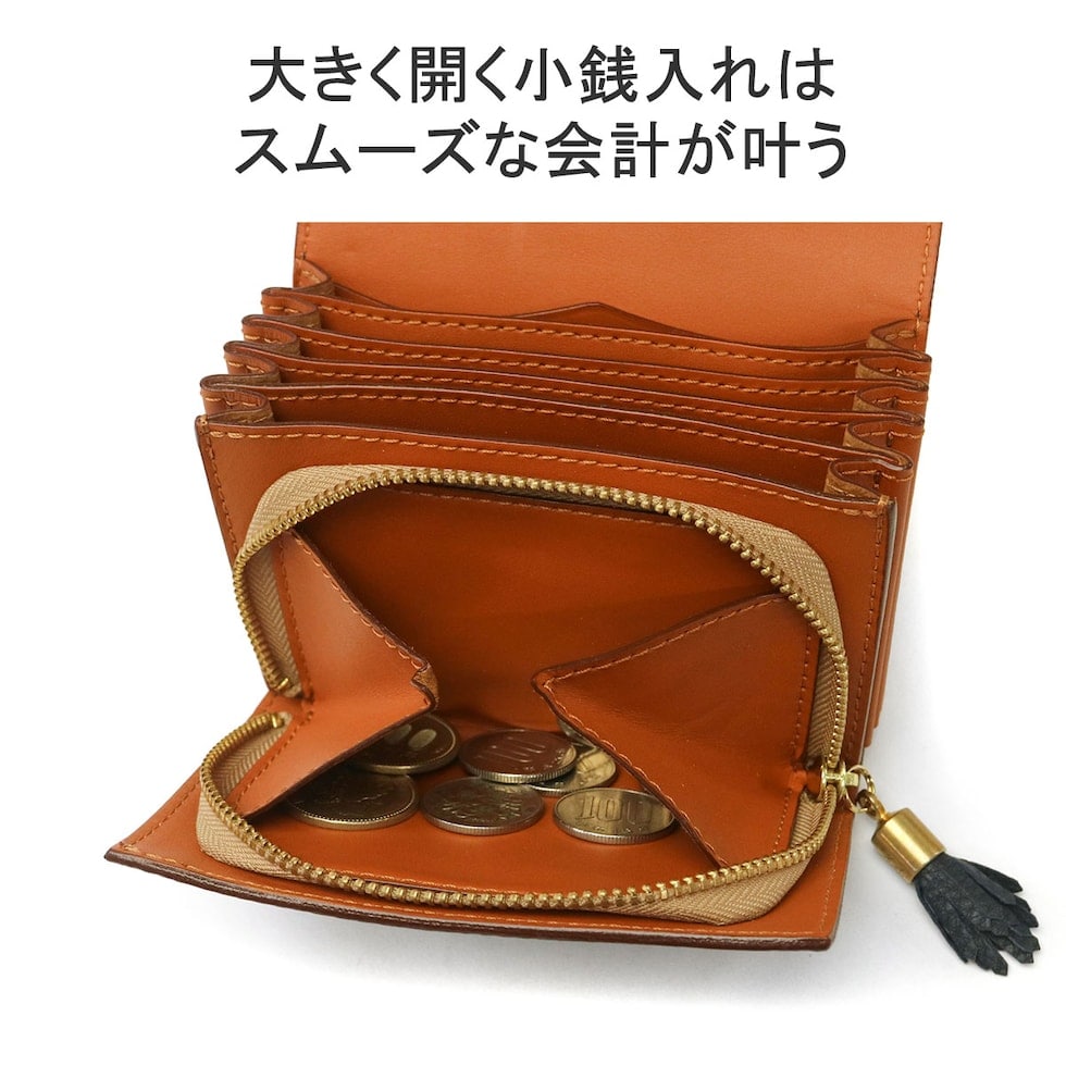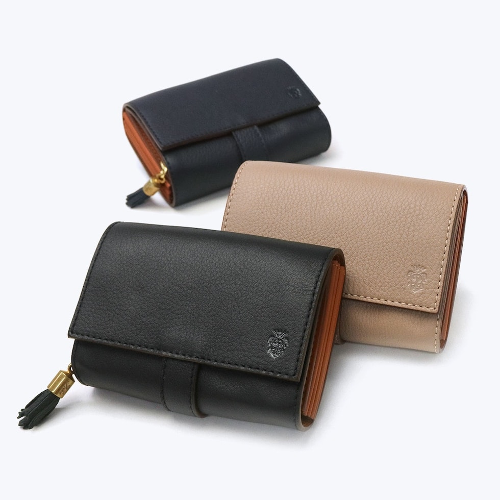 丸みを帯びたフォルムから「コロコロ」という愛称で長年親しまれている、フェリージの代名詞的存在の二つ折り財布。「Model.3500」から手を加えたフリンジの引き手は、実用的かつデザインのアクセントに。充実の大容量と機能性を備えた仕上がりとなっています。