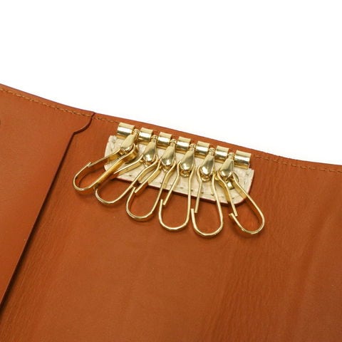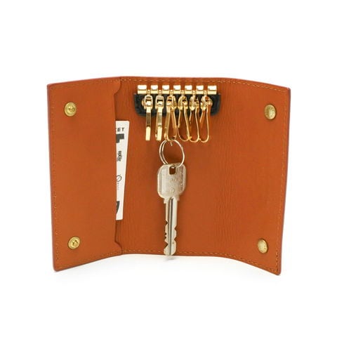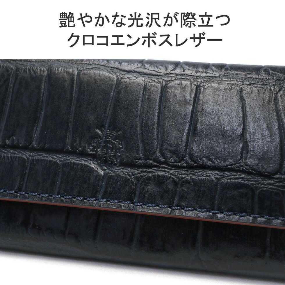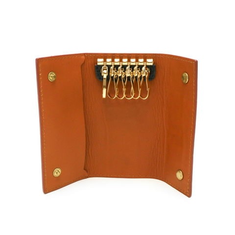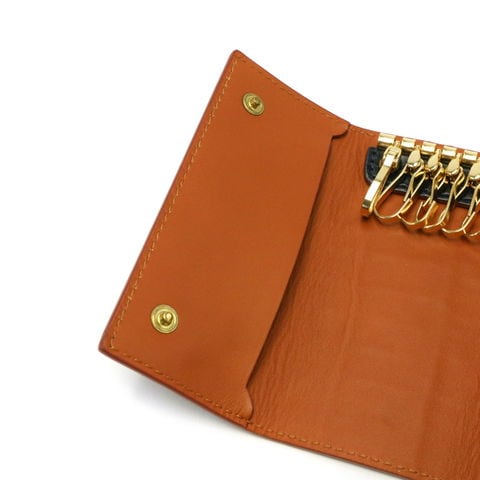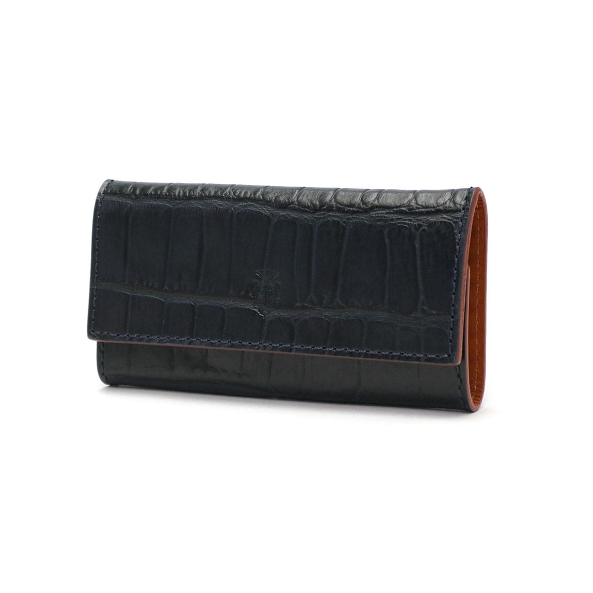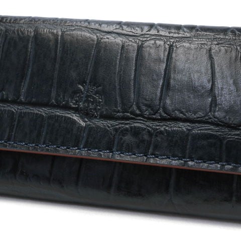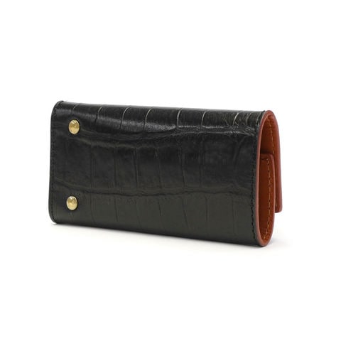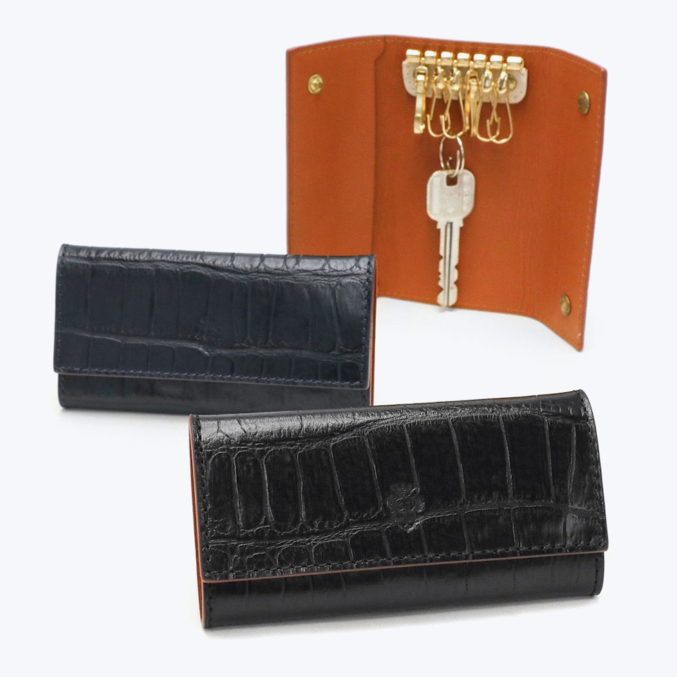 クロコダイル模様が型押しされたラグジュアリー感溢れるキーケース。本体はスナップボタンによる開閉式で、6連キーフックが付いていることで鍵の位置付けができ、迷わず素早く選んで取り出せるのがポイント。3つ折りタイプで、かさばることなくすっきりと収まり、シルエットを崩さず持ち運びできます。