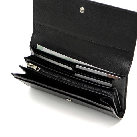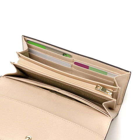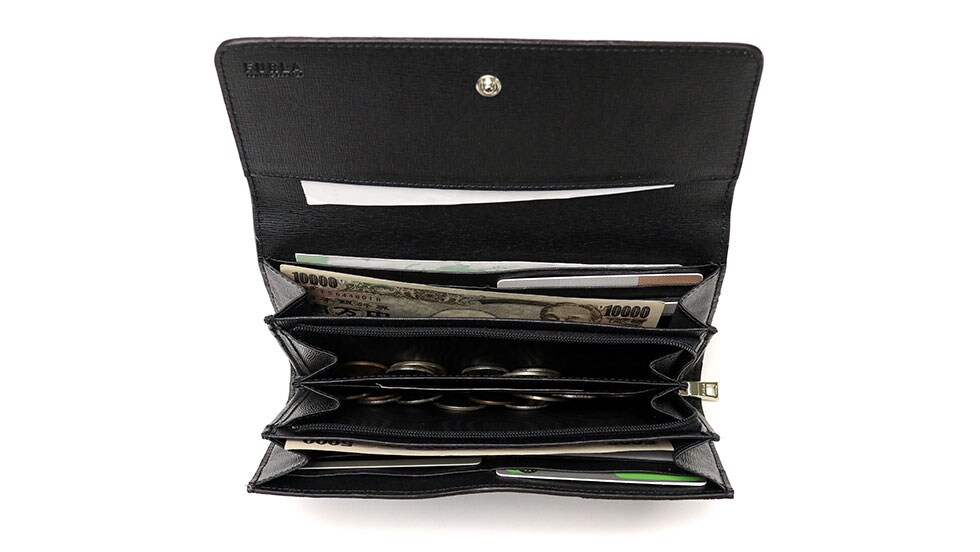 収納部は仕切りやポケットが充実し、お財布の中身がついつい増えてしまいがちな方も安心の大容量タイプとなっています。蛇腹状に開くマチを備えているので、沢山入れても中身を見やすく、スムーズなお会計をサポートしてくれます。