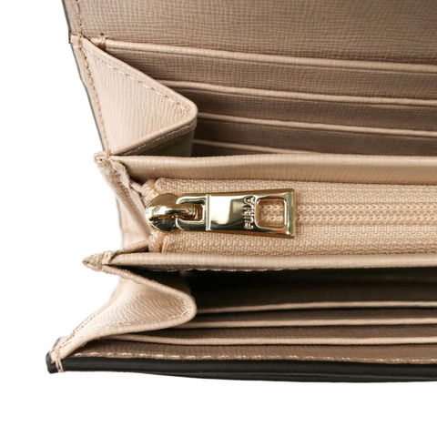 伝統的なクラフトマンシップ、熟練した職人の持つ専門知識、美のセンス、そして革新的なデザインを礎とするイタリアの老舗ブランド『FURLA/フルラ』のフラップ式長財布です。細かな型押しやゴールドのメタルパーツが繊細で女性らしい印象を与えてくれます。
