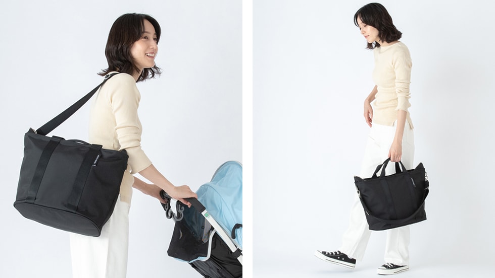 子育ての為に必要な機能がたっぷりと備わった2WAYマザーズバッグ。軽量かつ強度のあるナイロン生地を採用し、何かと多くなりがちなお子様の荷物も沢山収納できます。パパが持っても違和感のないユニセックスなデザインに仕上げられ、育児用としてはもちろん、日常使いでもご使用いただけます。