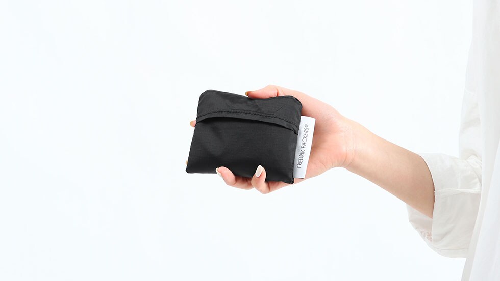 本体は小さくたたんで内側のポケットに収納できるパッカブル仕様。たたむと片手に収まるサイズになり、バッグの中に入れても場所を取らないためストレスなく持ち運べます。