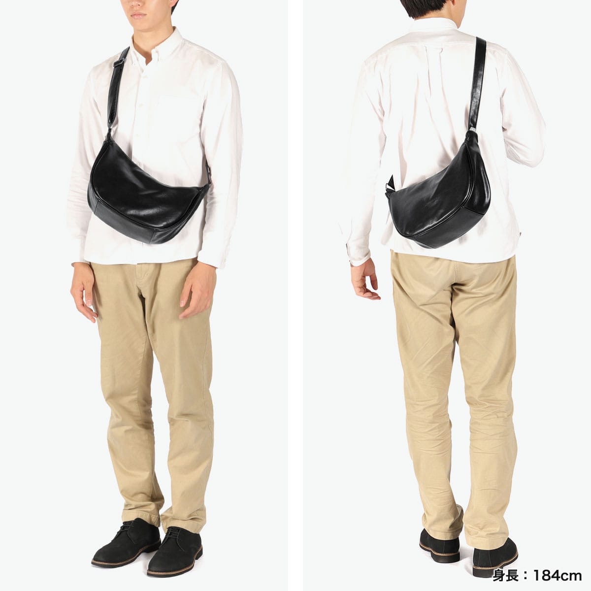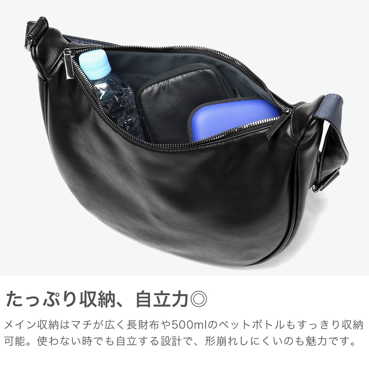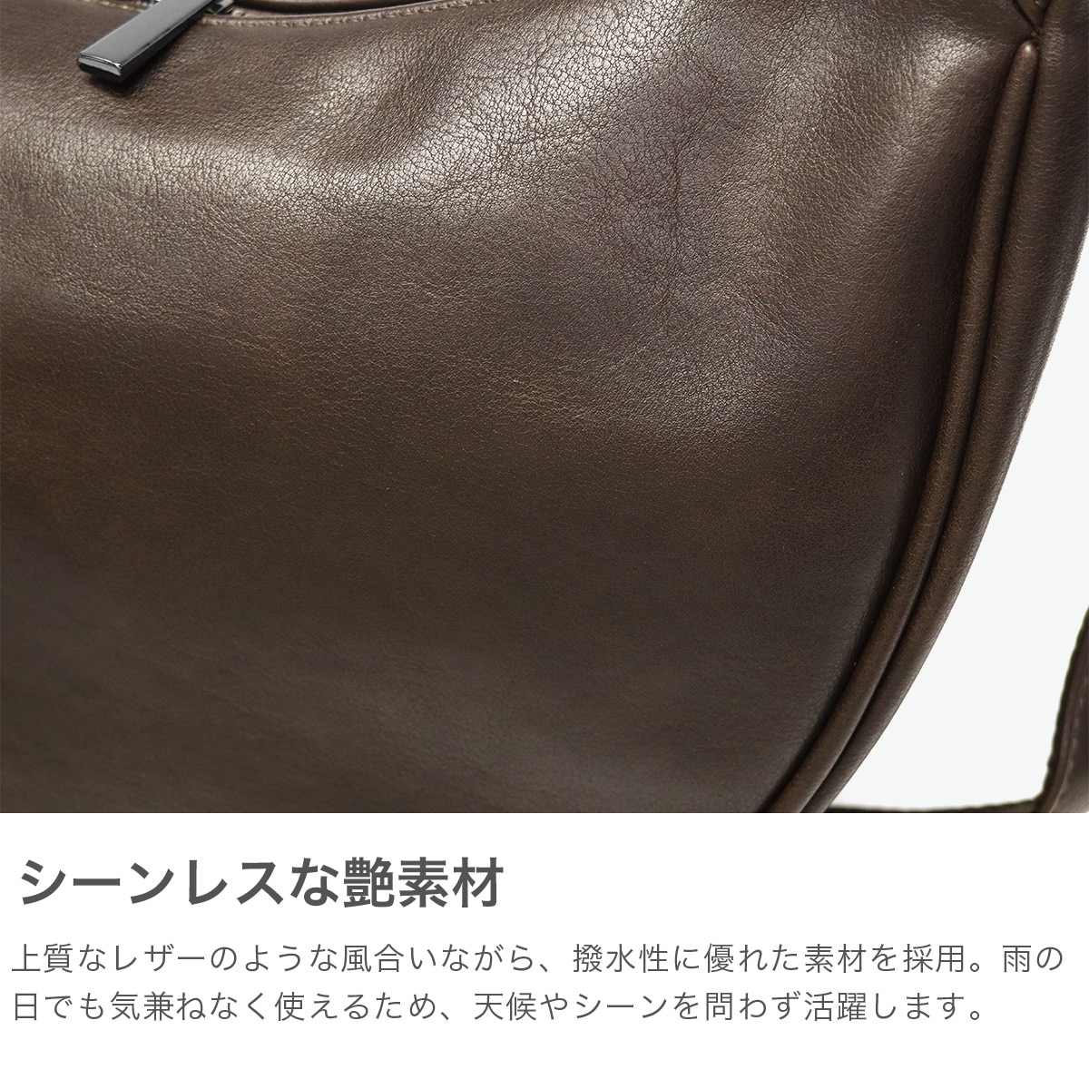 流れるようなラインが特徴のショルダーバッグです。肩掛け時も体にフィットし、美しいフォルムをキープします。レザーのような上質感と撥水性を兼ね備え、シーンを選ばず活躍。コンパクトながらマチが広く、長財布もすっきり収納。自立する設計で、使わない時もスマートに佇みます。