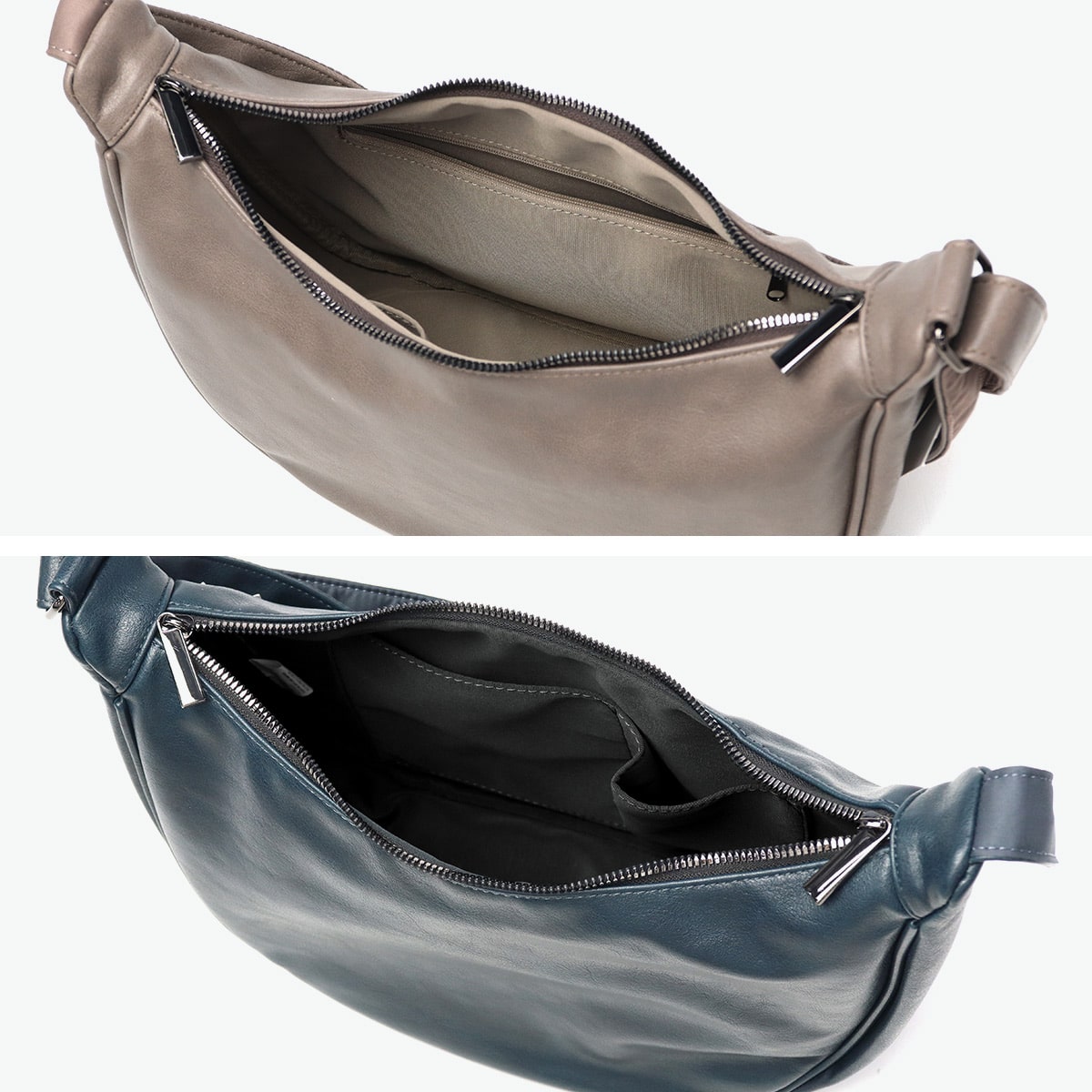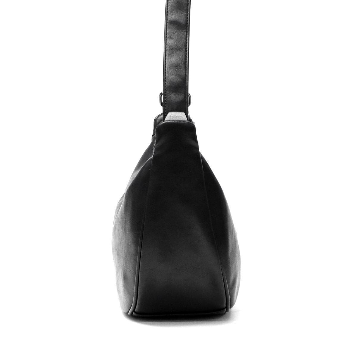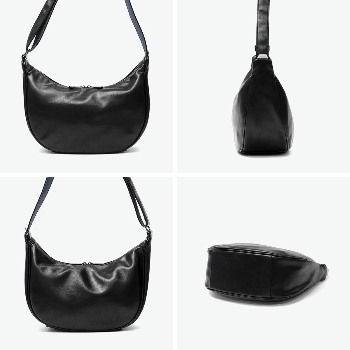 流れるようなラインが特徴のショルダーバッグです。肩掛け時も体にフィットし、美しいフォルムをキープします。レザーのような上質感と撥水性を兼ね備え、シーンを選ばず活躍。コンパクトながらマチが広く、長財布もすっきり収納。自立する設計で、使わない時もスマートに佇みます。