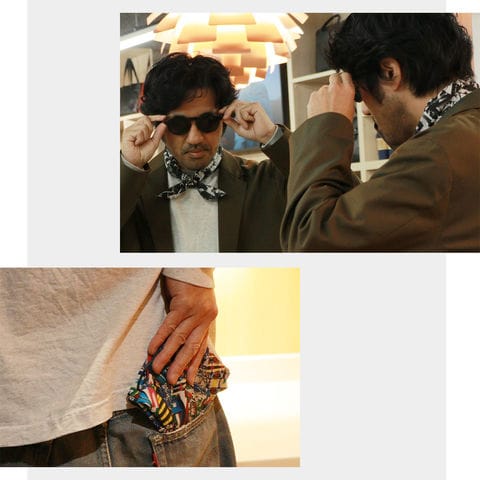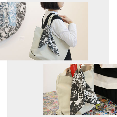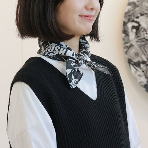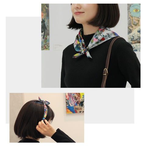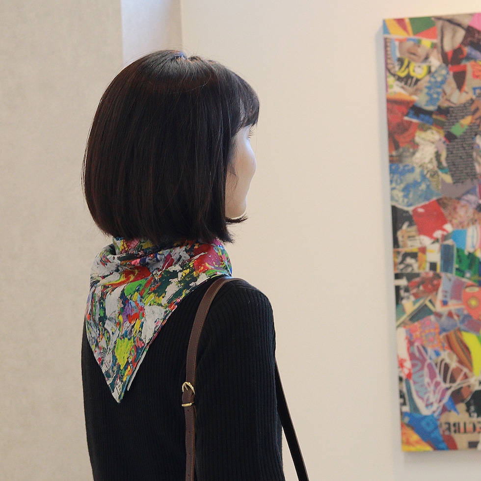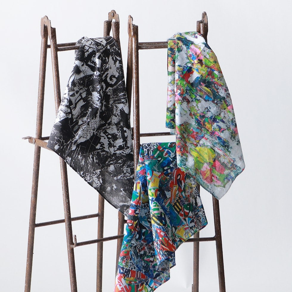 「視えない境界」をテーマにした個展作品をもとにG1900とのコラボバンダナを作りました。日々のスタイリング、ライフスタイルのアクセントにおすすめです。
