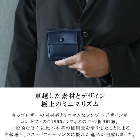 二つ折り財布 メンズ G1990 Raffine ラフィネ FOLDED MINI WALLET FRENCH KIP 二つ折り 財布 ミニ財布 コンパクト 小さめ 本革 フレンチキップ レザー ジーイチキュウキュウゼロ B01002-03