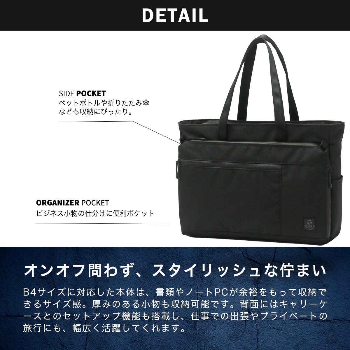 ジップポケット(L)×1[ポケット(S)×2、ペンホルダー×3、キーホルダー×1(取り外し可能) 内蔵]