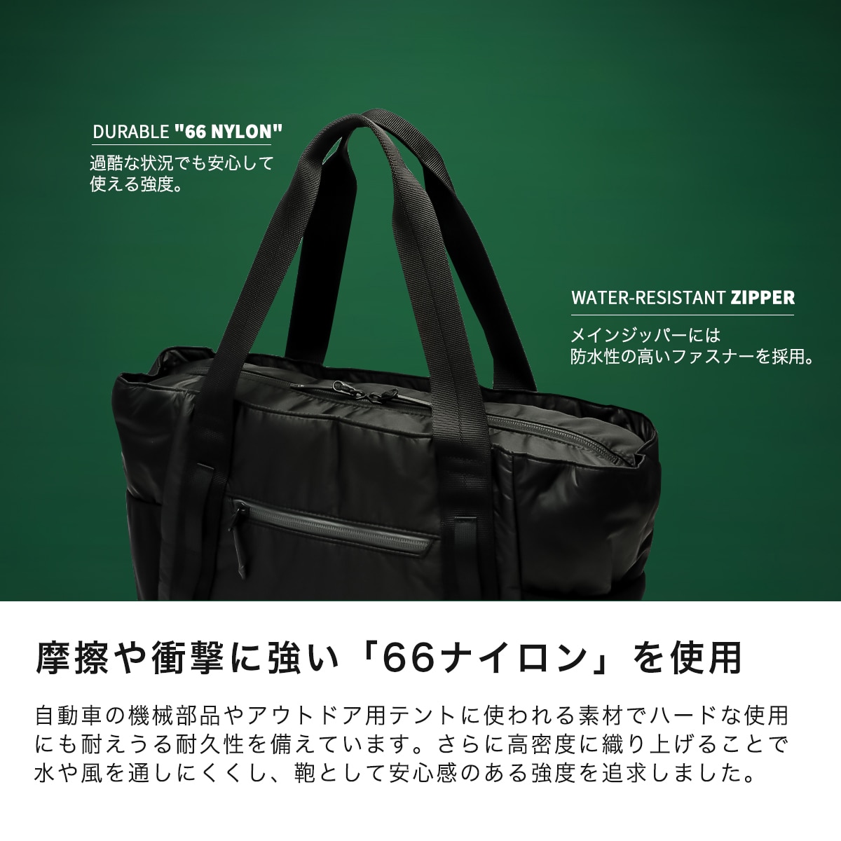 薄手のリップストップナイロンを使用し、圧倒的な軽さを実現した「LUSTER」のトートバッグ。機能性はもちろん、コーデを選ばない洗練されたデザインもポイント。カジュアル・フォーマル問わず、幅広いシーンで活躍します。