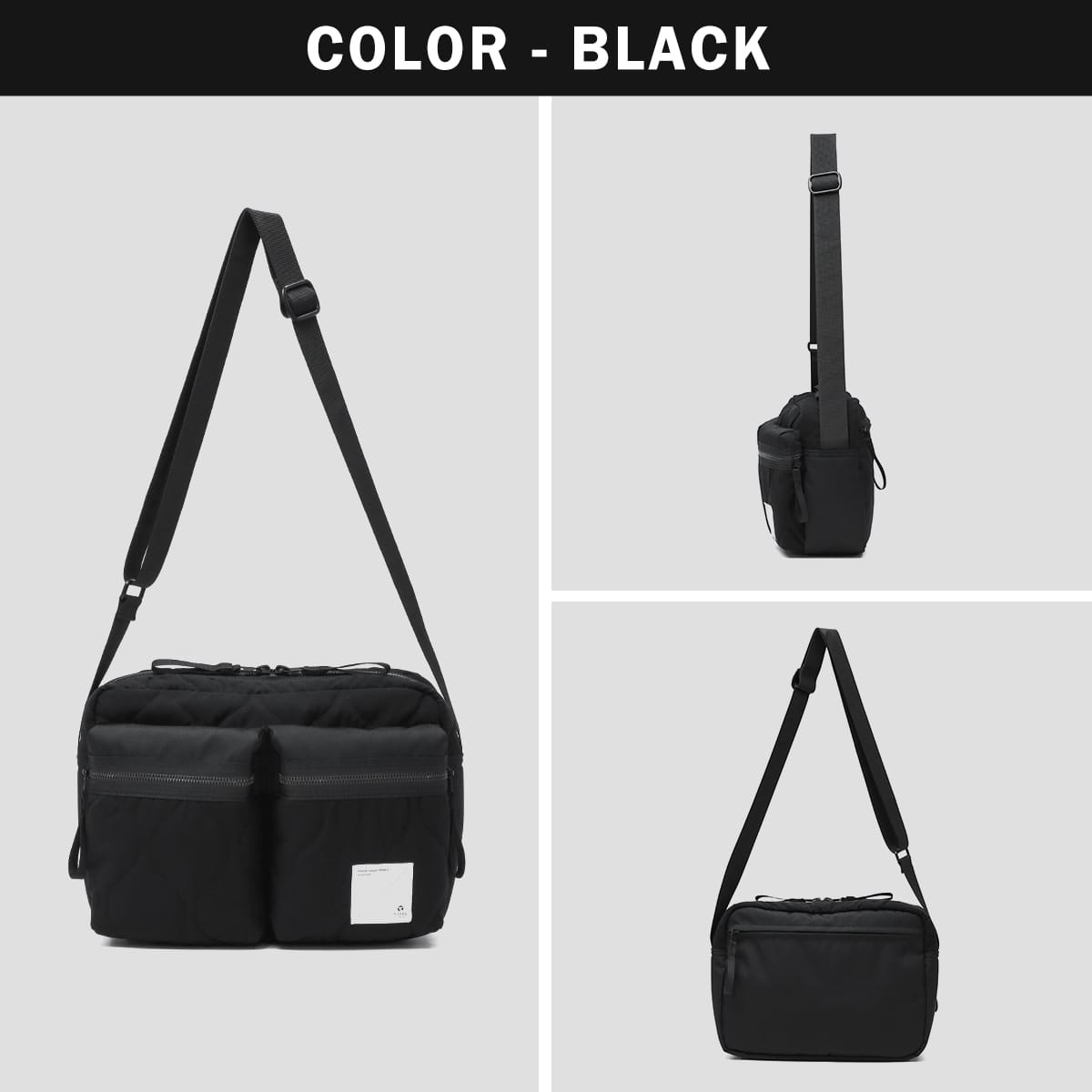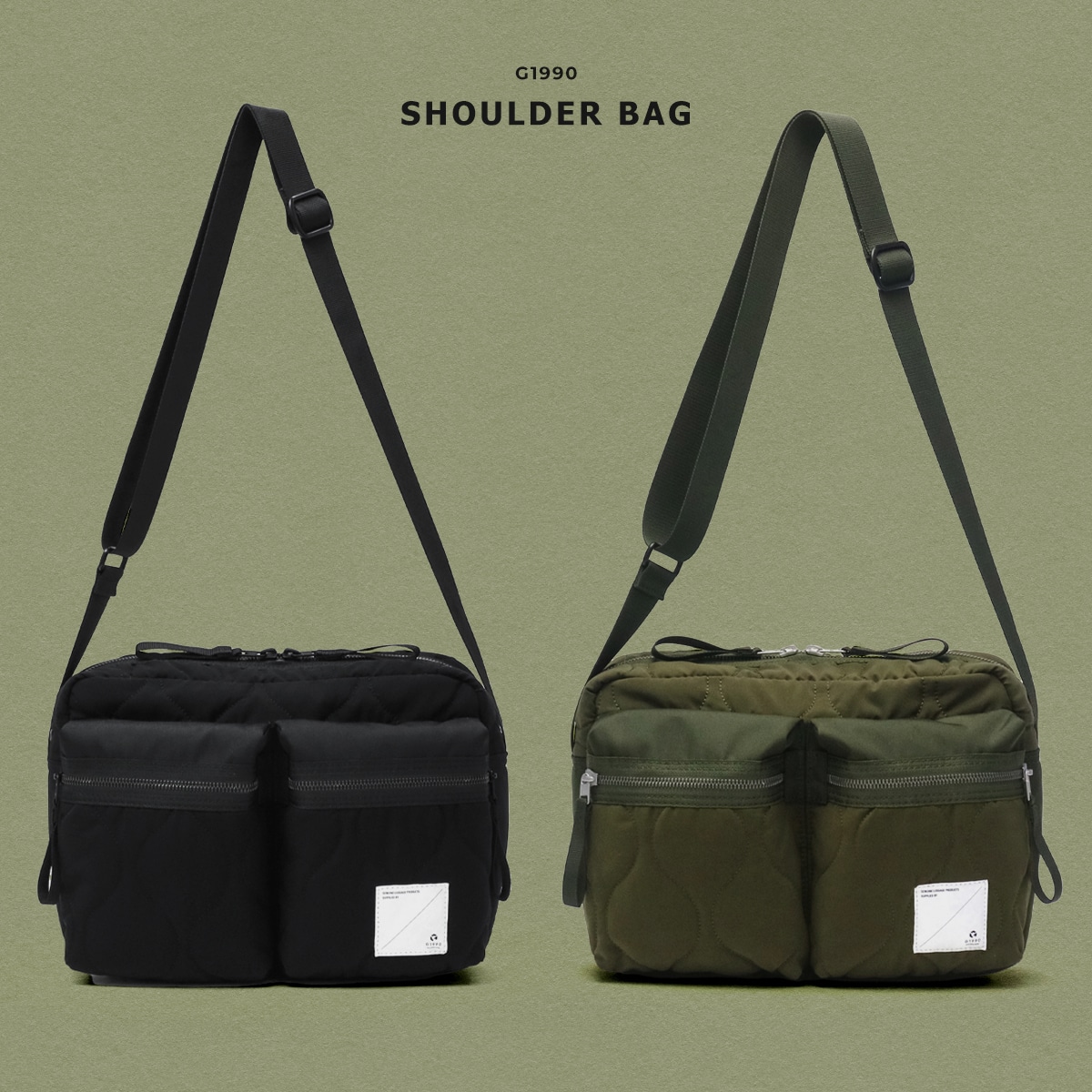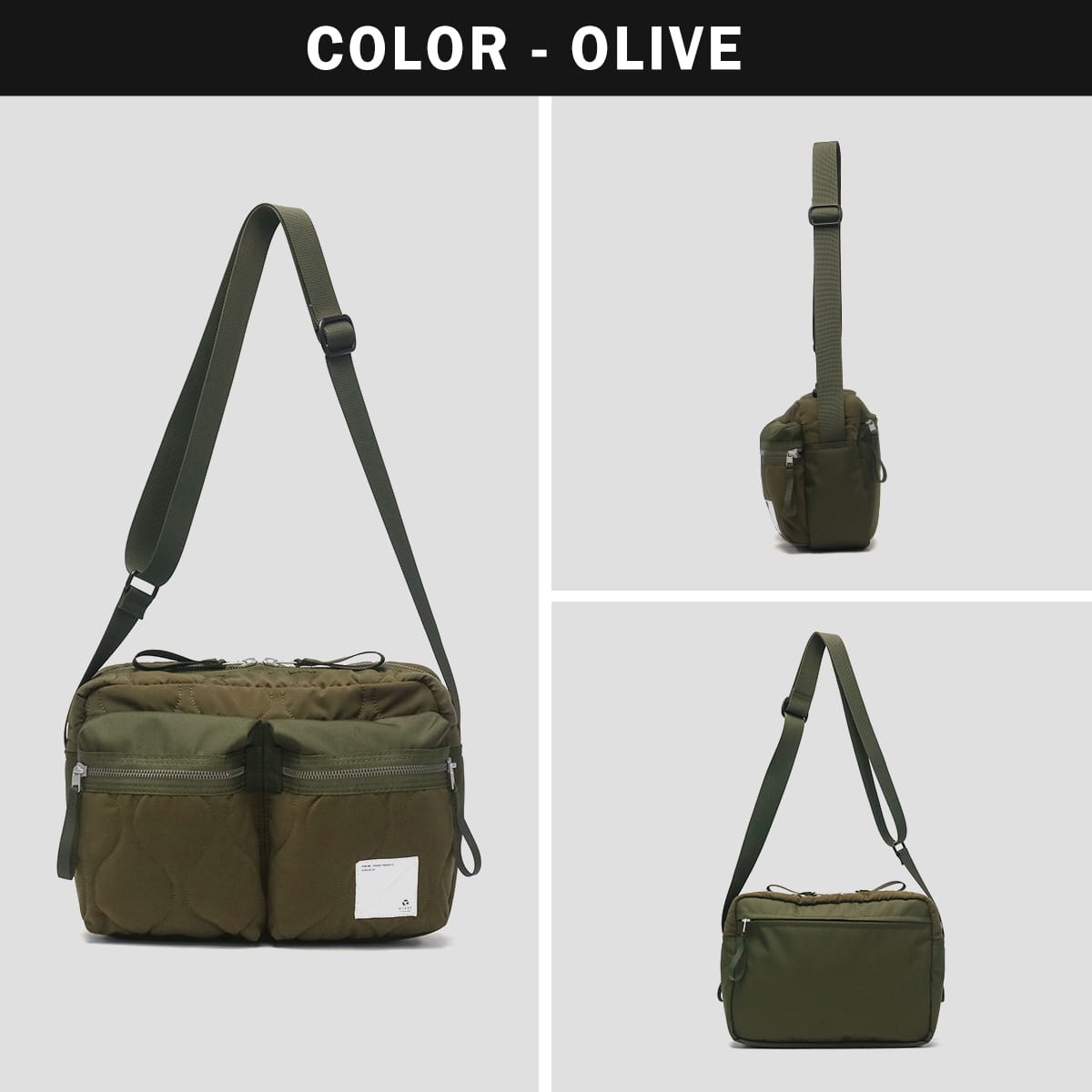 フロントのダブルポケットが特徴的なショルダーバッグ。内装にはiPadなどのタブレットを収納できるポケットを設けており、内装マチにもペットボトルなどを収納するためのオープンポケット、背面にもファスナーポケットを設けた、トラベルシーンなどでの実用性も高い仕様。