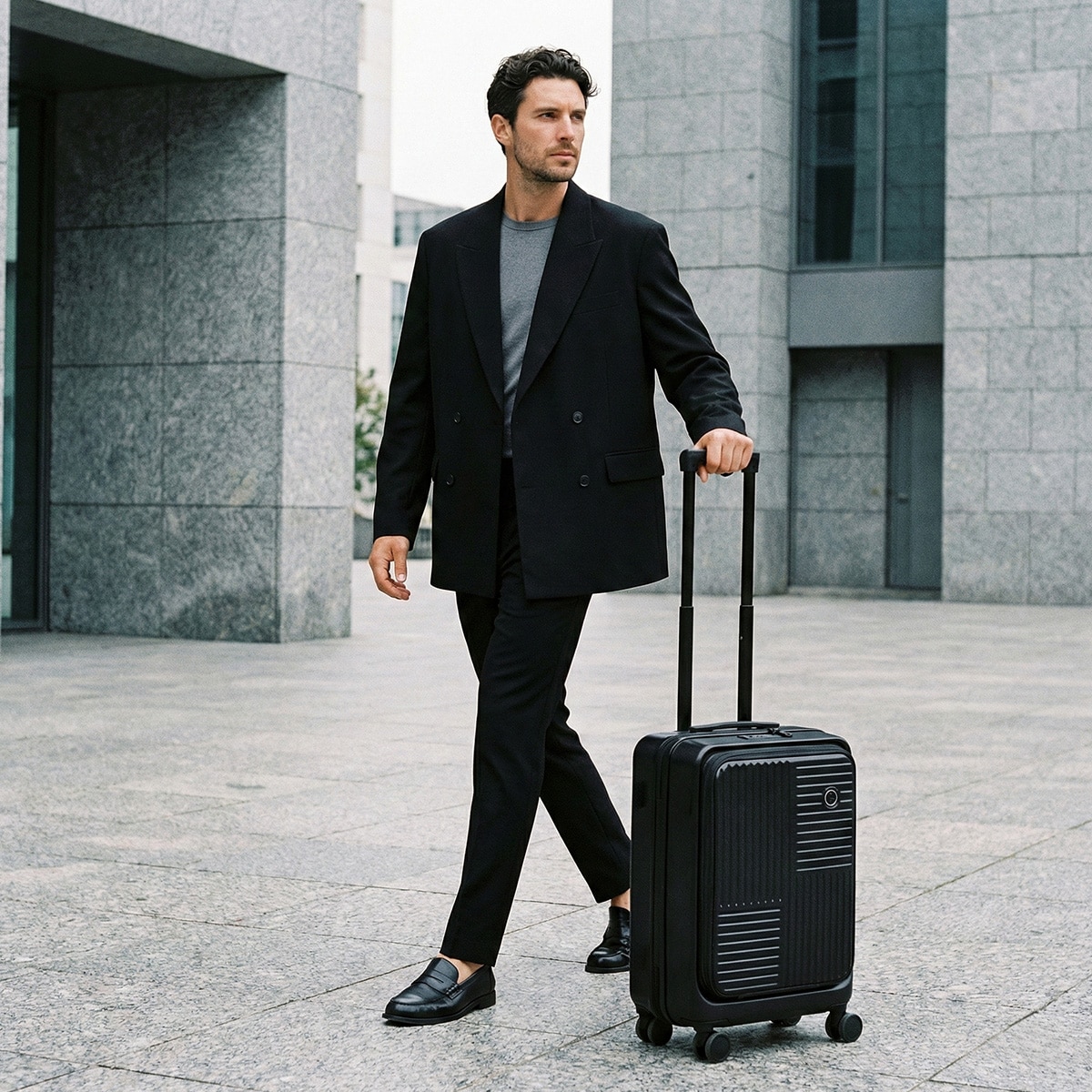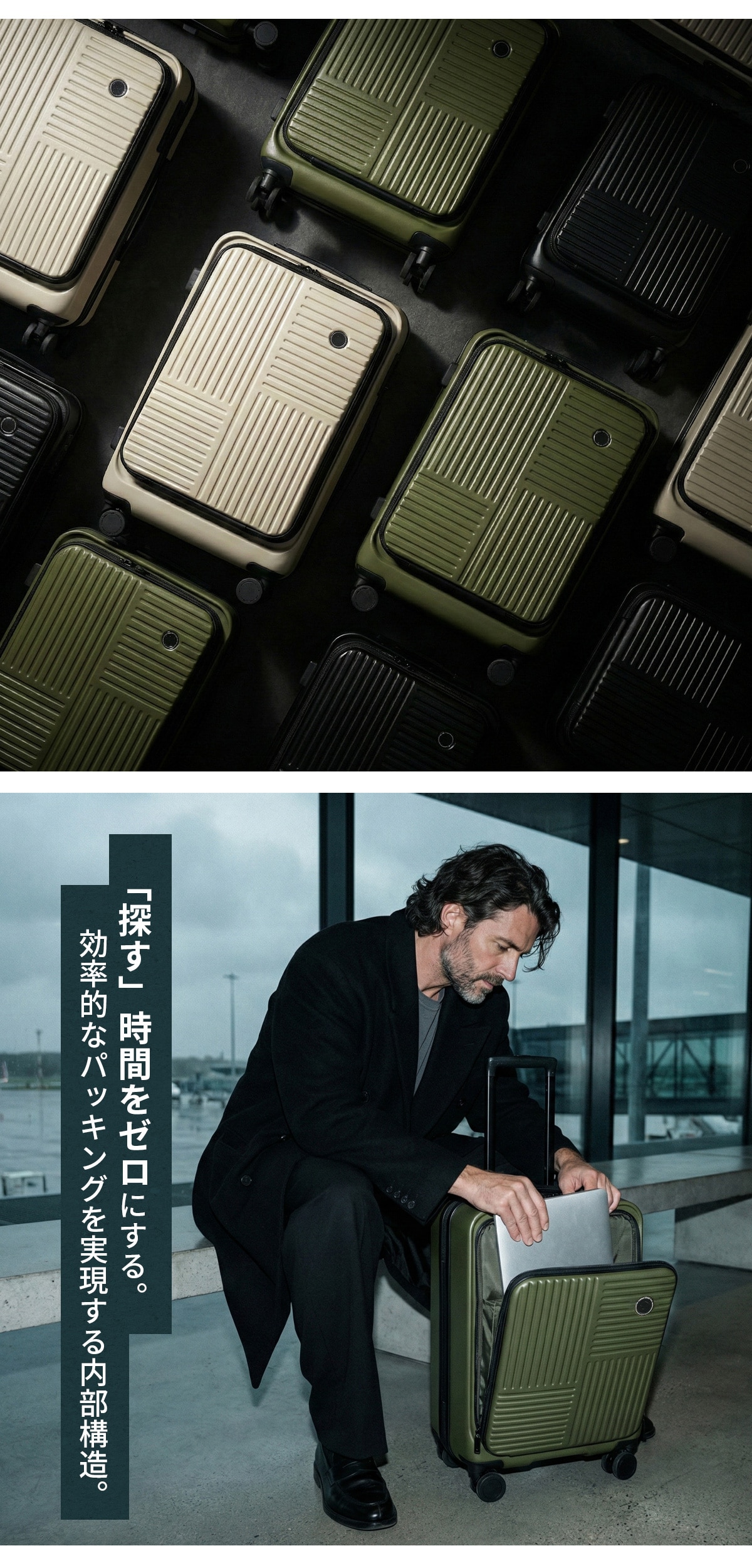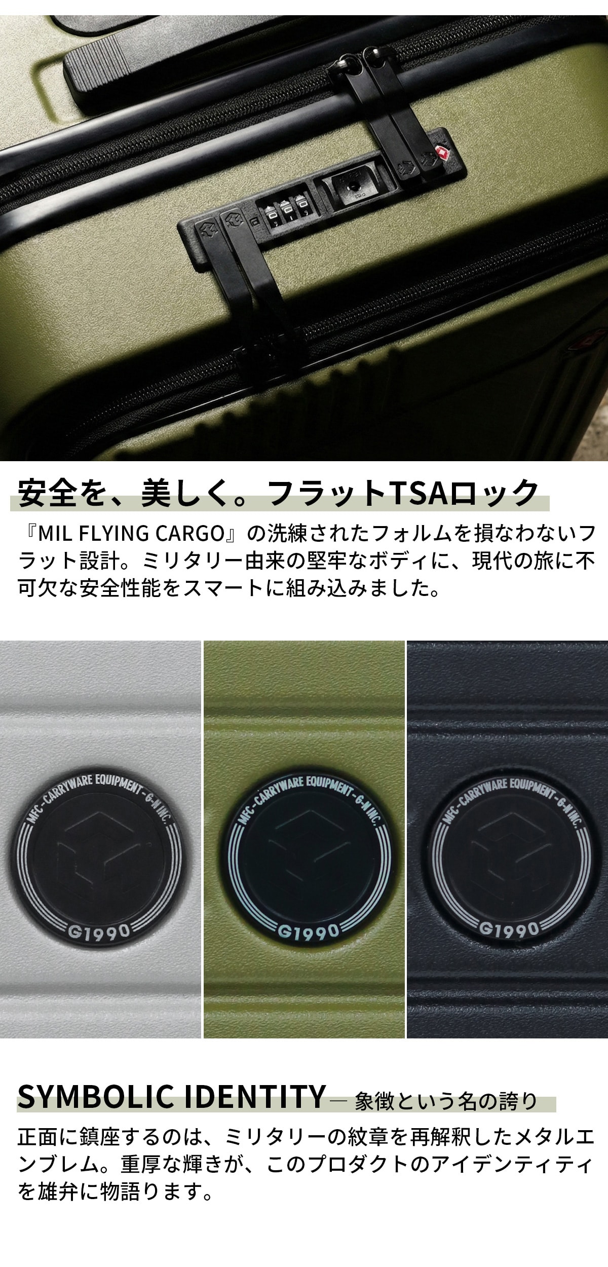 MILスペックを彷彿とさせる直線的なフォルムと、無駄を削ぎ落とした構造美が際立つキャリーケース。高い堅牢性と実用性を備えながら、都会的で洗練された印象に仕上げました。フロントオープン仕様により、移動中でもスムーズにアクセスでき、PCや書類、ガジェットをスマートに出し入れ可能。出張やワーケーションなど、多様化する現代の移動シーンに対応します。タフでありながら主張しすぎない。武骨でありながら上品。単なる荷物入れではない、“機動力”を携えた移動のためのギアです。