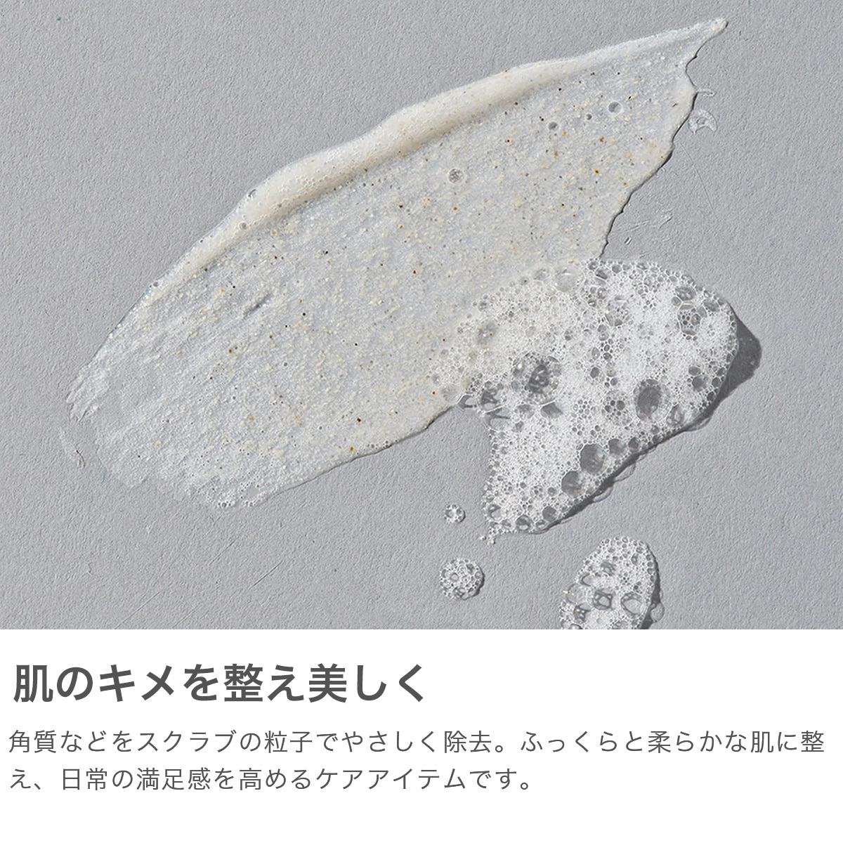 水、軽石、ココアンホジ酢酸二ナトリウム、ココイルメチルタウリンナトリウム、アクリレーツコポリマー、塩化ナトリウム、香料、ココベタイン、エチルヘキシルグリセリン、カプリリルグリコール、ラウリルグルコシド、微結晶セルロース、ヘキシレングリコール、EDTA-2Na、アルコール、水酸化カリウム、プルヌスアルメニアカ(アプリコット)核油、アルガニアスピノサ核油、ヴィティスヴィニフェラ(ブドウ)種子油、シモンドシアシネンシス(ホホバ)種子油、ブチレングリコール、プロパンジオール、ラベンダー花水、ムラサキバレンギクエキス、ヤグルマギク花エキス、カミツレ花/葉エキス、サルビアスクラレア(クラリ)エキスヒヤシンスエキス、1,2-ヘキサンジオール、チャ葉エキス、グリセリン、クロッカスサティバス花エキス、ダマスクバラ花エキス、マデカッソシド、シャクヤク根エキス、ツボクサエキス、アシアチコシド、マデカッシン酸、アシアチコ酸