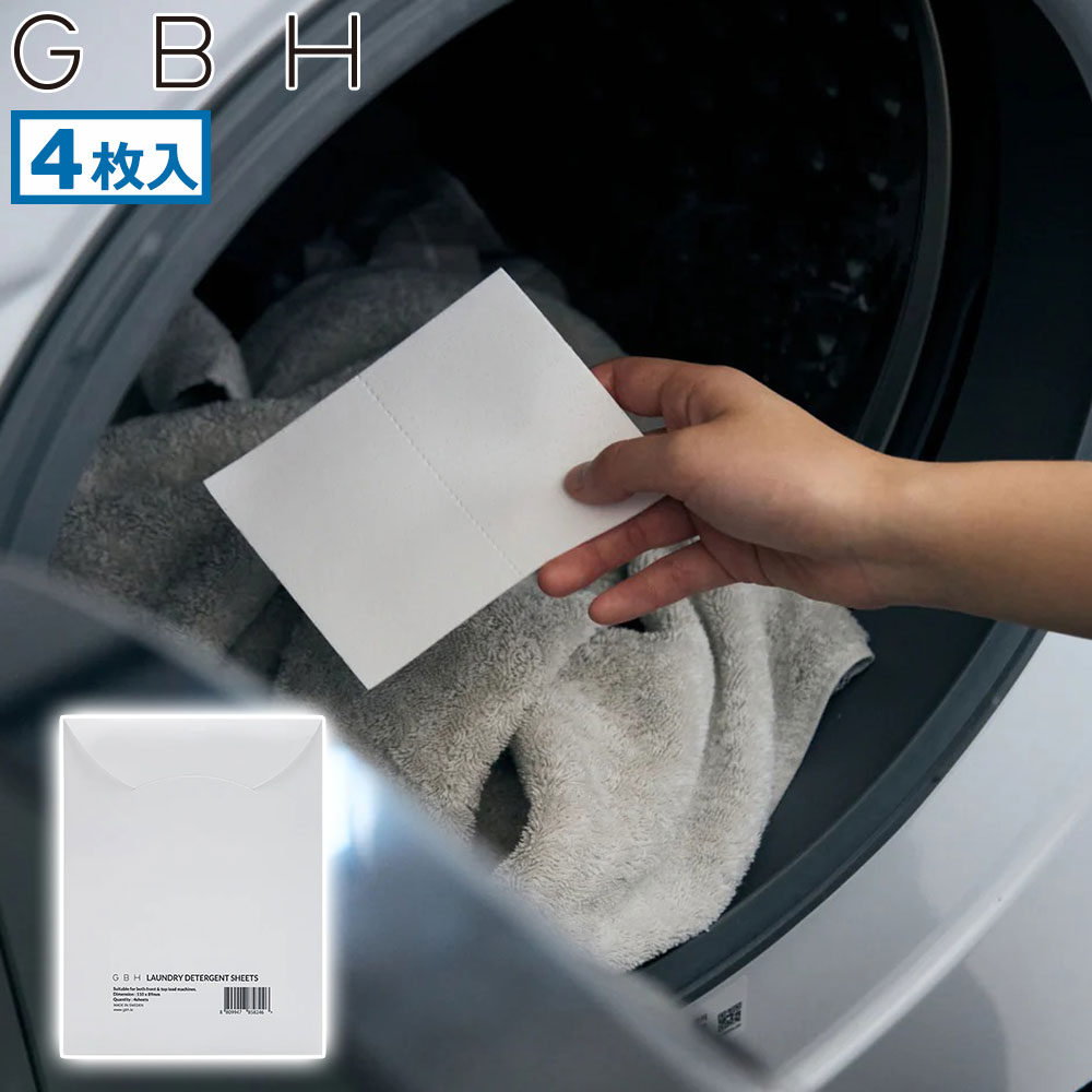 手軽に使えるシート型洗濯洗剤。こちらは4枚入りのタイプです。衣類の上にシートを入れるだけで、計量なしでサッと洗濯を済ませられる優れもの。一般の洗濯機とドラム式、どちらでもご利用可能です。洗濯物3kgあたり1枚のシートを使用することをおすすめしておりますが、洗濯物の量や汚れの程度に応じて、シートの使用量を調整してください。植物由来成分で肌に優しく、無香製品のため、香りが苦手な方や敏感肌の方も安心してお使いいただけるアイテムとなっています。