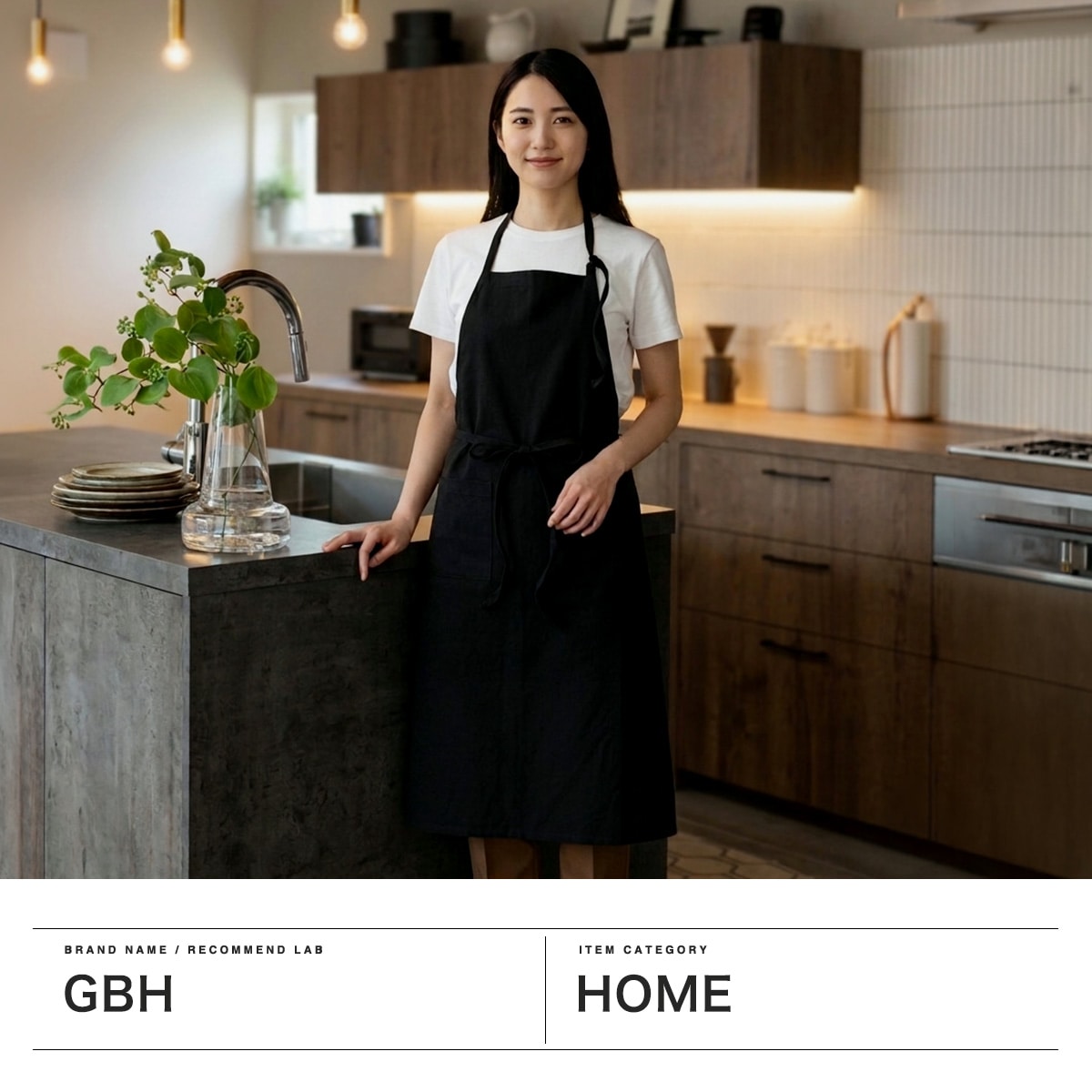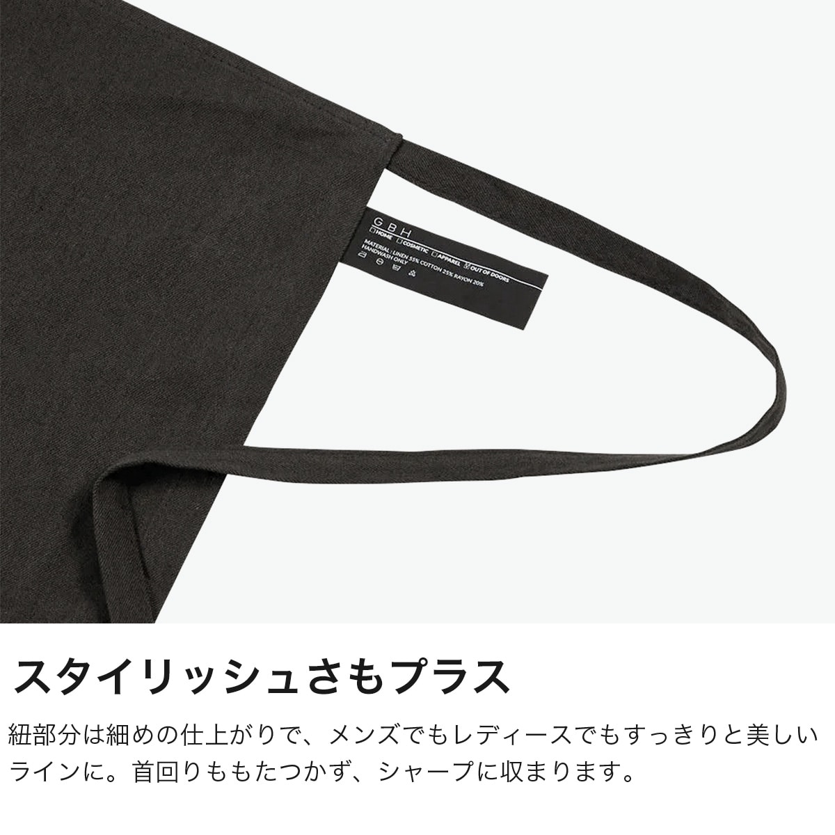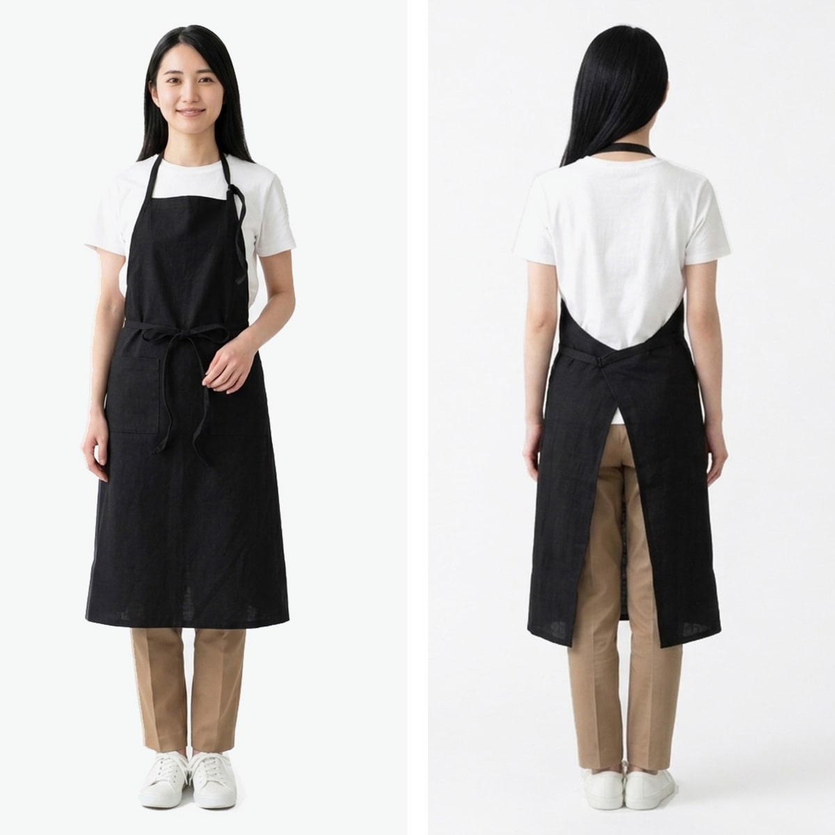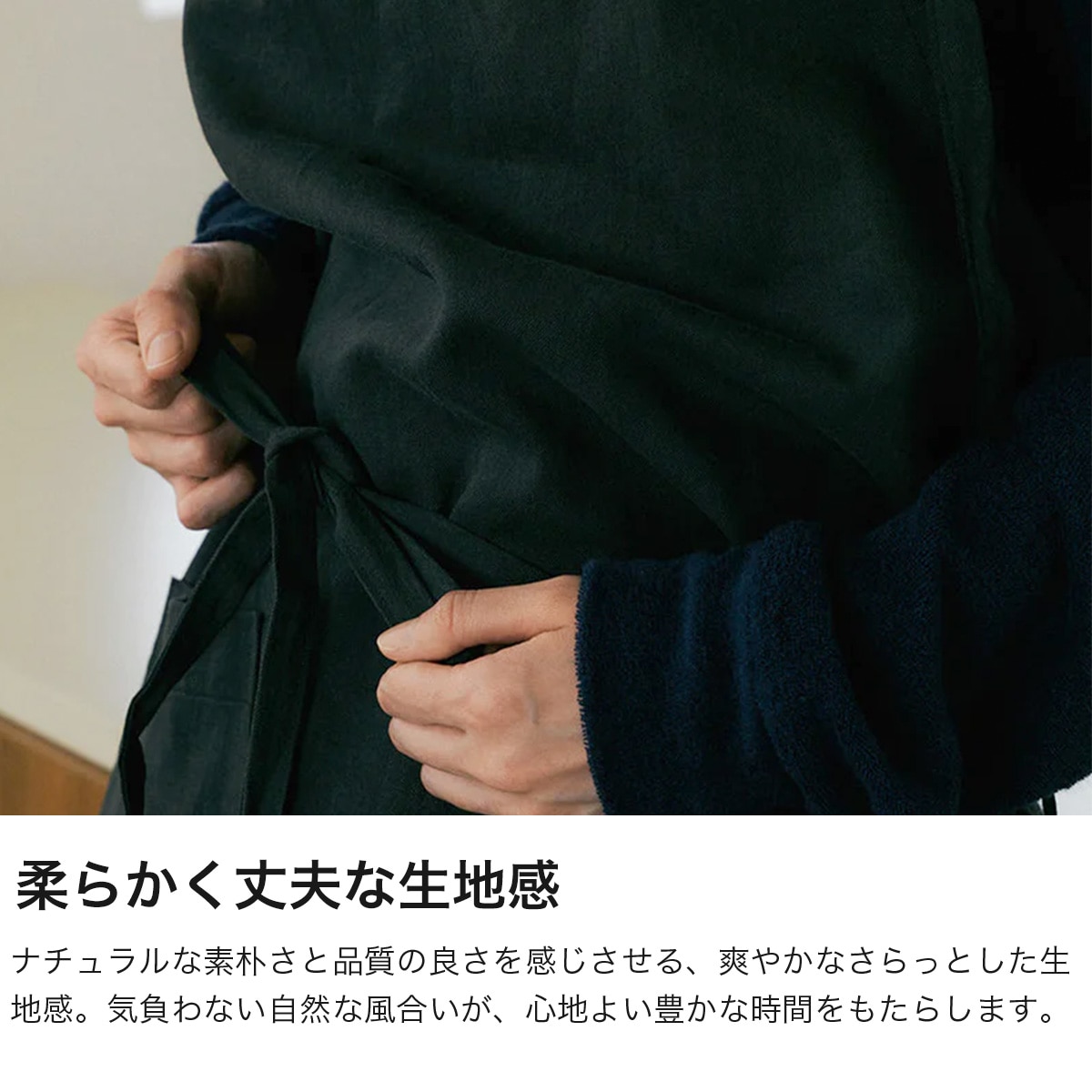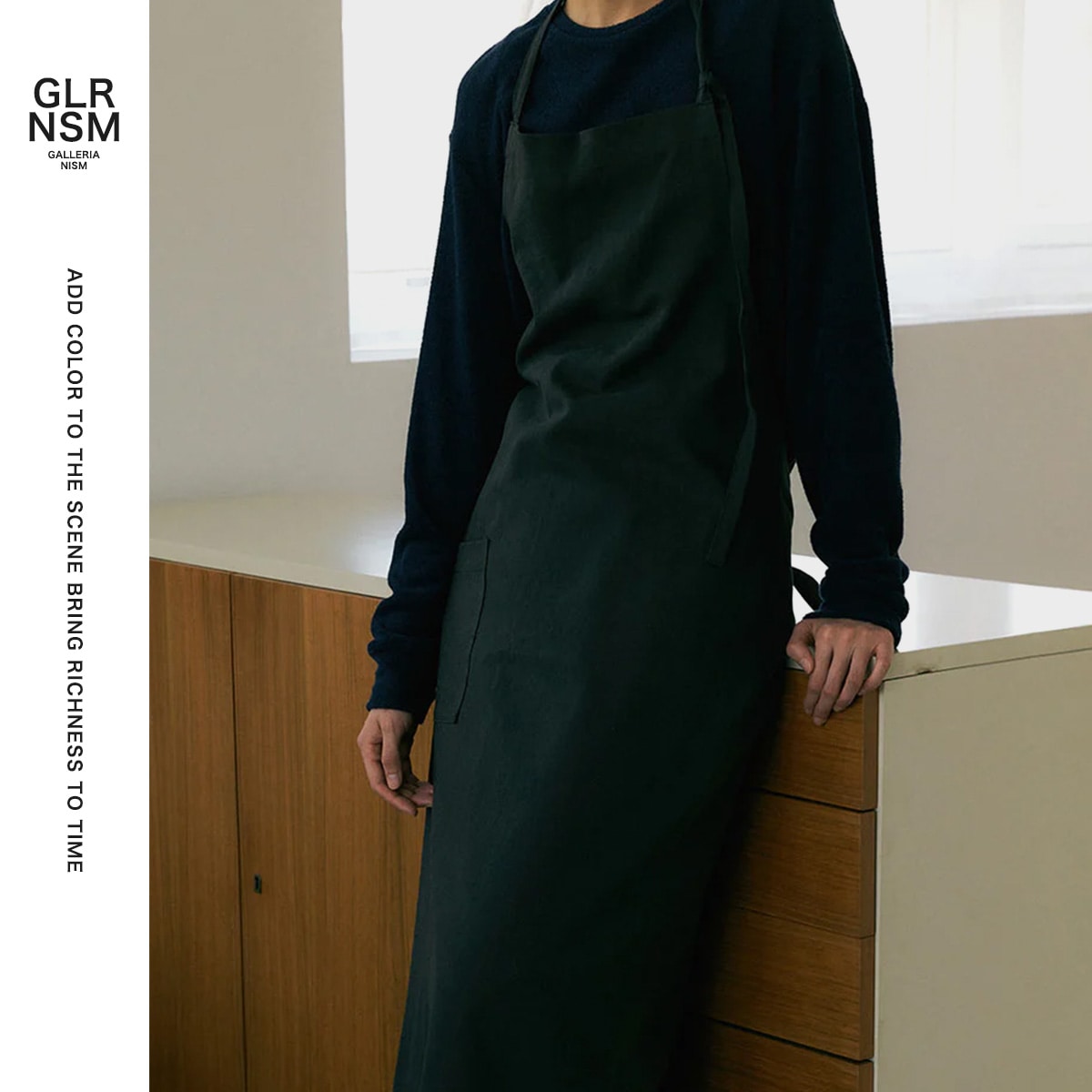 ユニセックスで使えるサイズ感で、ストラップはお好みに合わせて長さの調整が可能なベーシックなロングエプロン。お部屋のインテリアにも自然に馴染む佇まいです。シンプルなデザインで小物の収納に便利なポケット付き。日々の料理や作業時間を、さりげなくスタイリッシュに彩ってくれる一着です。