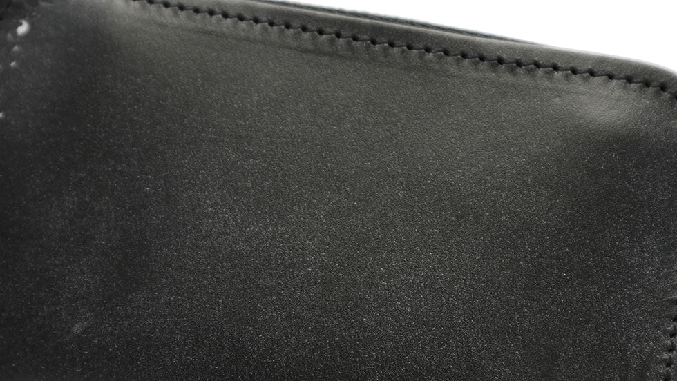 本体に使用されているフルブライドルレザーは、化学染料や顔料を一切含まない水性染料で染色されています。染料に顔料が含まれていないため、最初は多少淡い色合いの見え方ですが、エイジングによってどんどん濃い色になっていき、自分だけのエイジングを楽しんでいただけます。