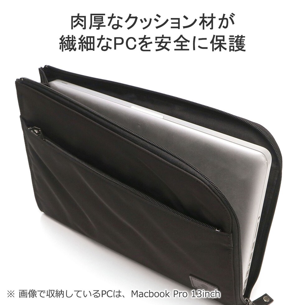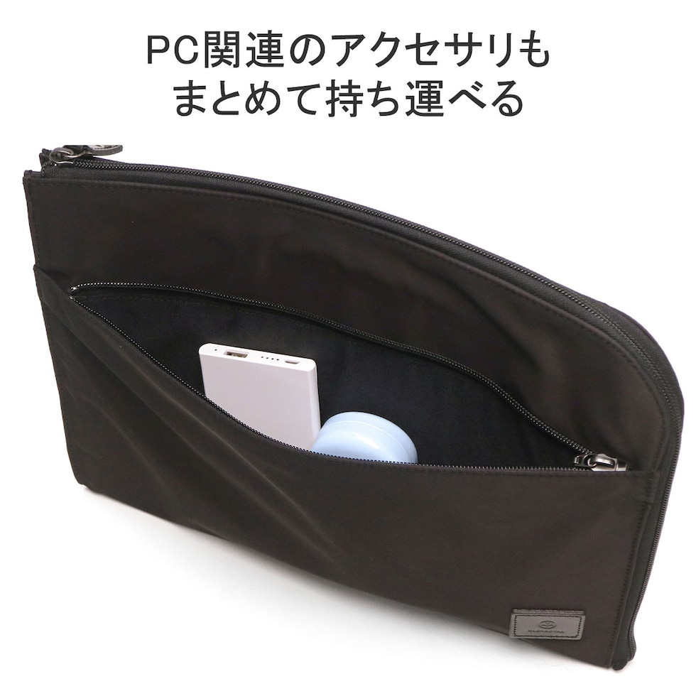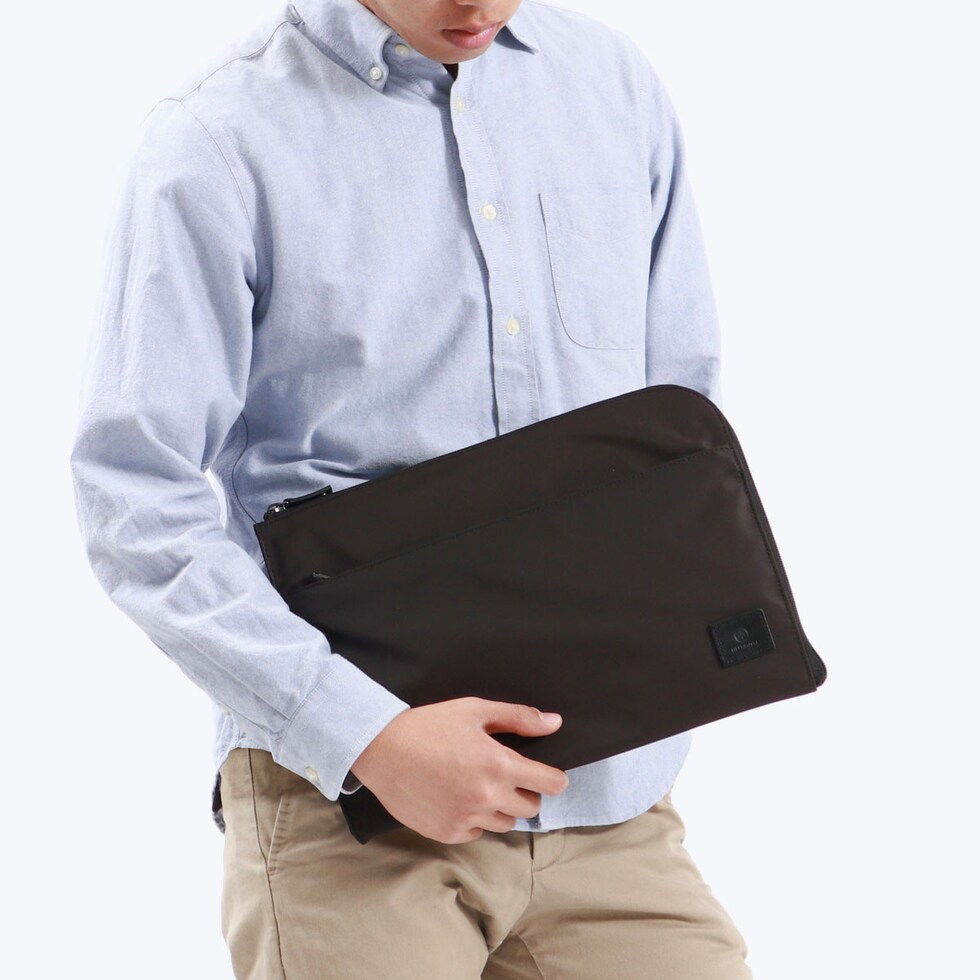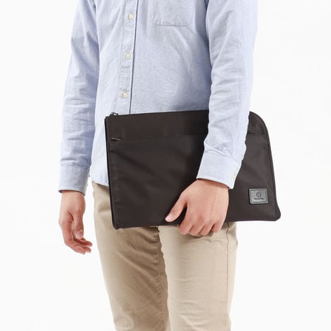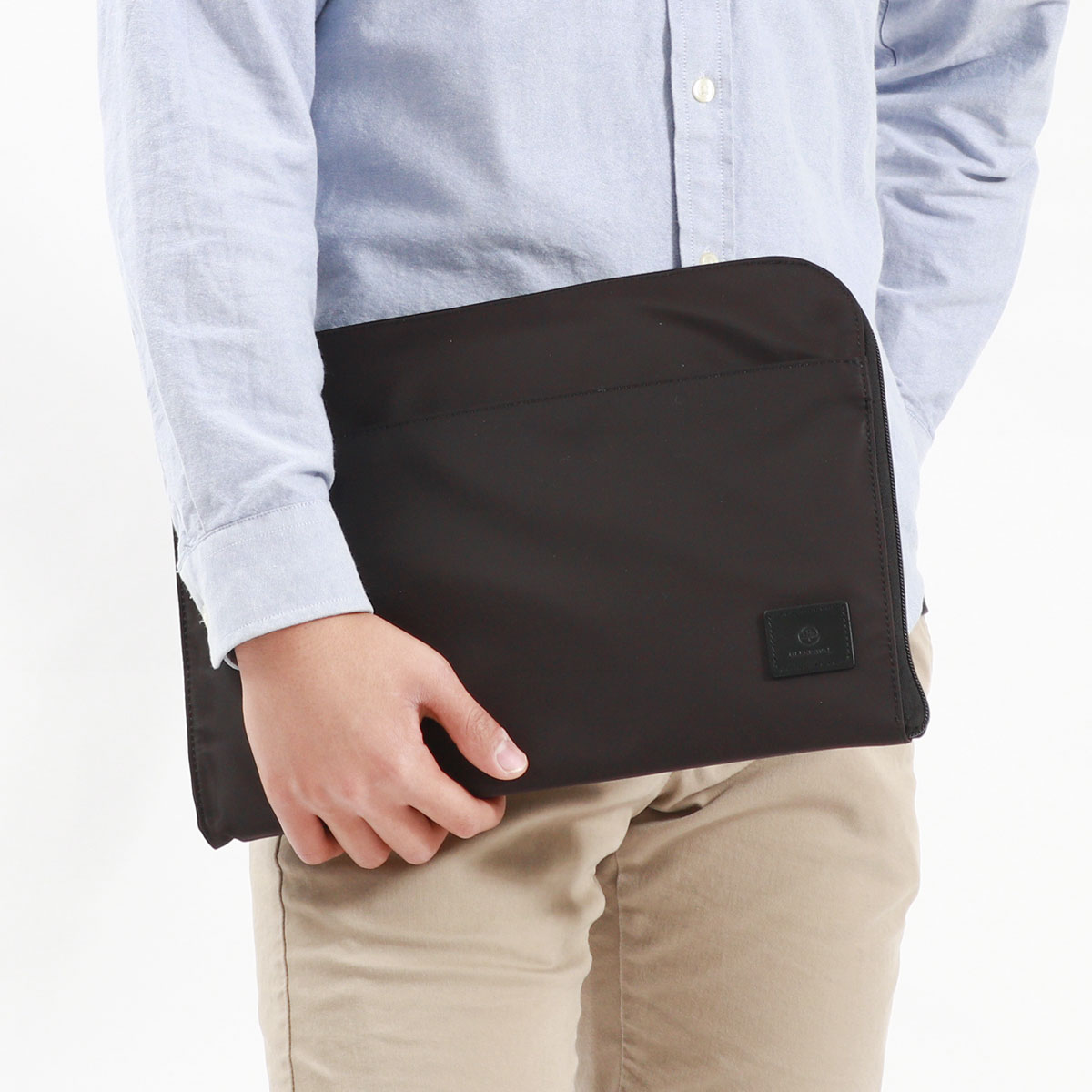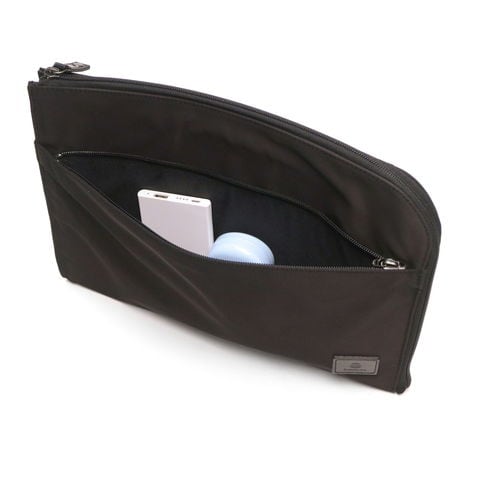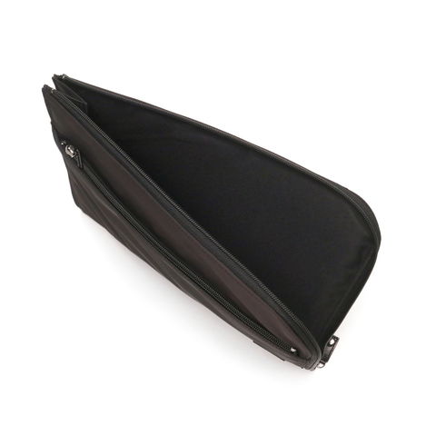 “現代の多様なライフスタイルに寄り添う”ニューコレクション「コンテンポラリーコレクション」。こちらは13インチのノートパソコンがすっきり収まる、ドキュメントケース型のクラッチバッグです。素材は程よい光沢があるナイロンツイル(撥水加工)を用い、随所にブライドルレザーをあしらうことで品の良さを演出。シンプルながらも高級感があり、どこか英国らしさを感じさせるクラッチバッグに仕上がっています。