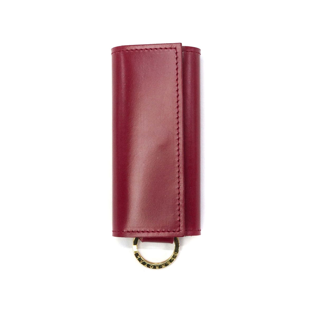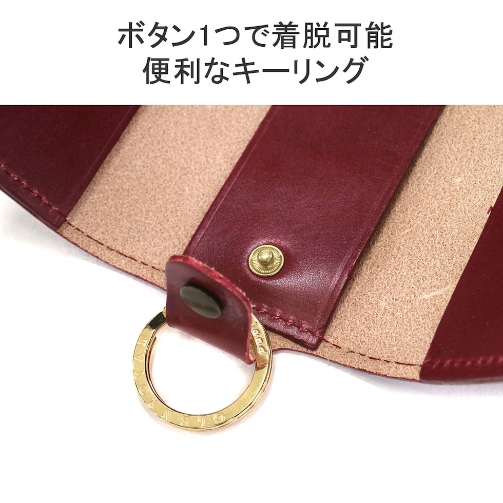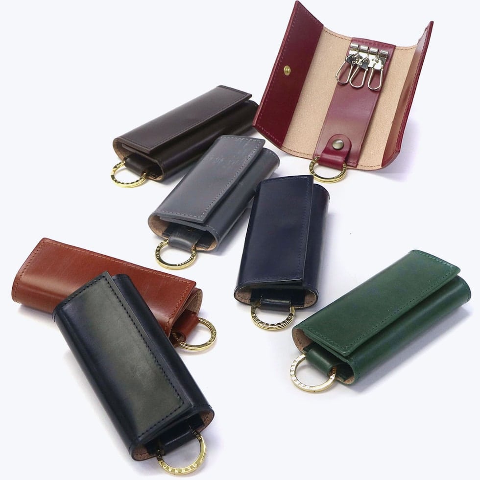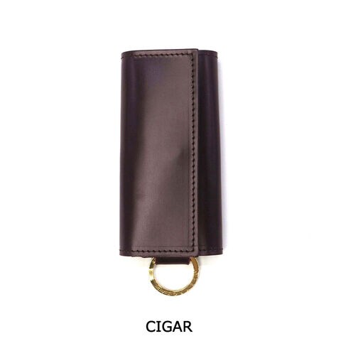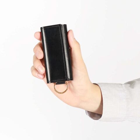 スクエア型のスリムな形が手にフィットし、使い勝手の良い小振りなサイズ感の三つ折りキーケース。外側のリングには大きめの鍵が取り付け可能で、外して単体でキーリングとしても使用したり、用途に合わせて使い分けができる便利な造りに。スナップボタンが表から見えないミニマルデザインで、オンオフ問わず使いやすいルックスに仕上がっております。