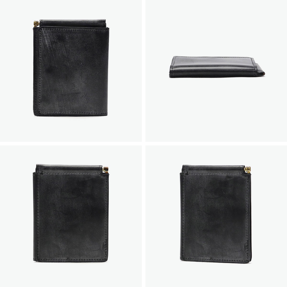 上質で高級感のあるフルブライドルレザーを使用したマネークリップ。薄型ながらもカードが11枚収納でき、キャッシュレス派にもおすすめです。ジャケットの胸ポケットからでもスマートに取り出せるスリムなデザインがポイント。使い込むほどに深い色艶が生まれ、カードのアタリや細かな傷も味わい深いエイジングに変化します。機能性と品格を兼ね備えた、大人のための逸品です。