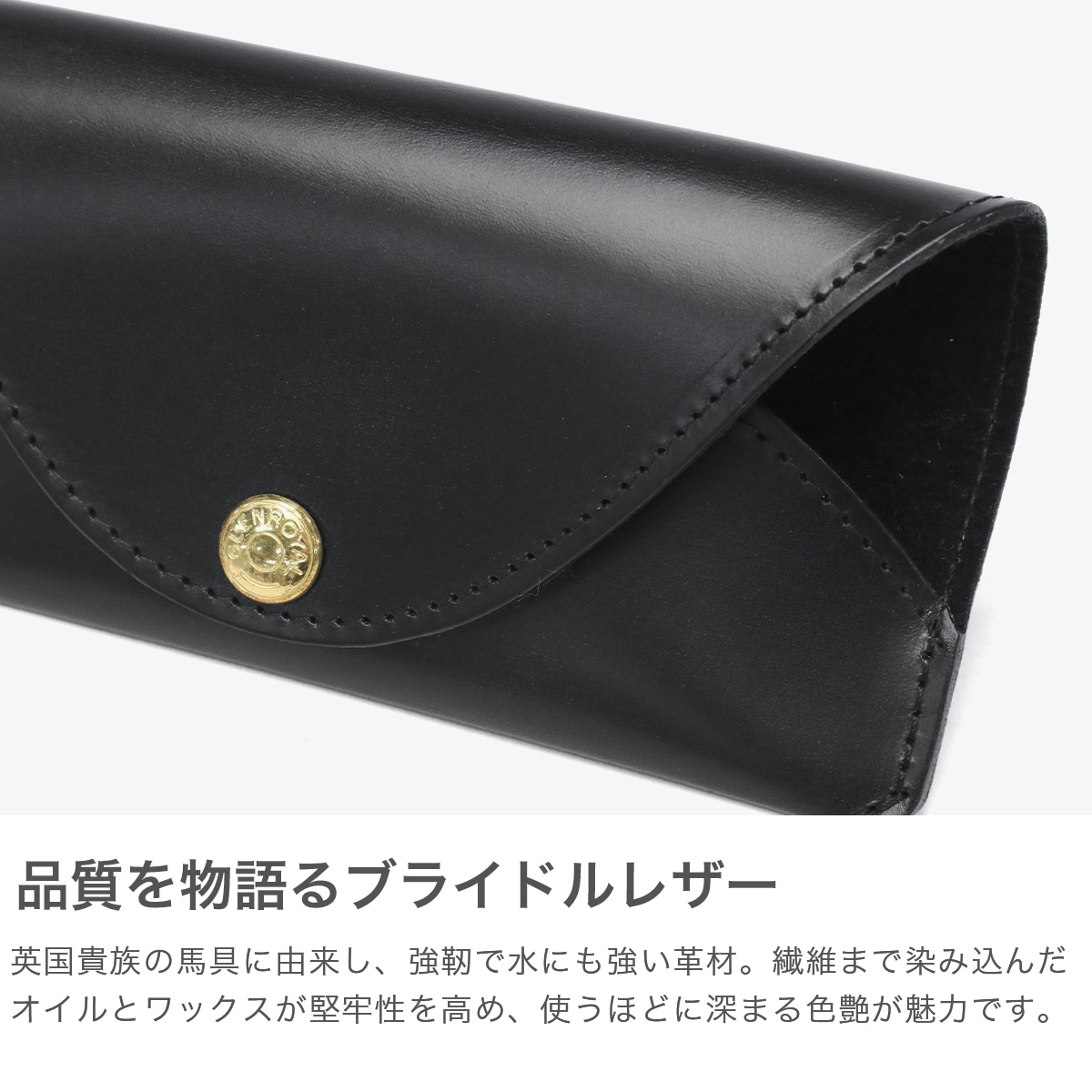 ブライドルレザーを使用したメガネケースです。軽くてコンパクトなフラットフォルムはバッグの中でもかさばらず、スマートに持ち運べます。ブライドルレザー特有の経年変化(エイジング)を楽しみながら長くご愛用いただけます。