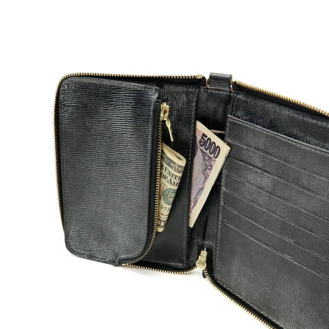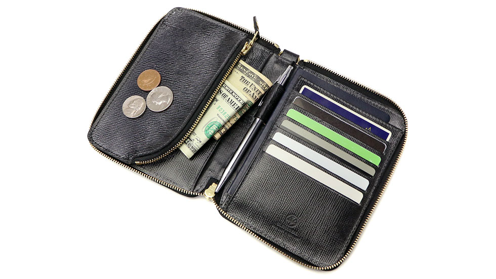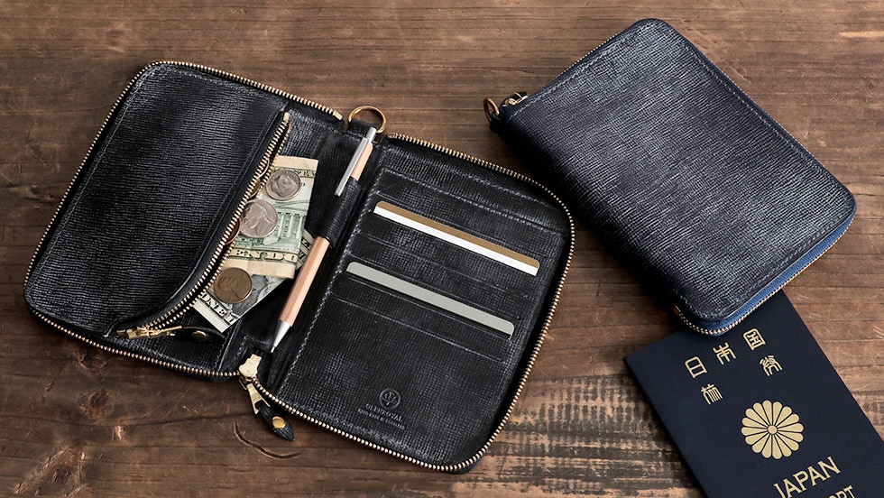 本体はパスポートや紙幣、カード類など必要な貴重品をひとまとめに管理できる収納力のあるつくり。お札は折り畳むことで、小銭入れの下や大きめのポケットなどに自由に収納可能です。普段使いも可能にしてくれるコンパクトなサイズ感で、幅広いシーンで柔軟に対応できる仕上がりとなっています。
