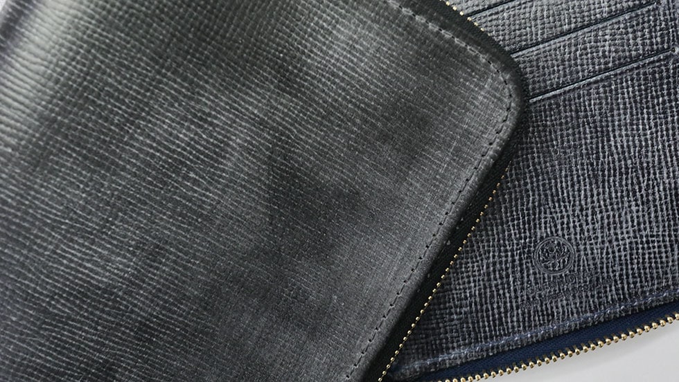 素材には、湖の水面をイメージした柄をエンボスしたブライドルレザー「レイクランドブライドル」を使用。使い続けることで色味に深みが増しツヤが現れ、レザーのエイジングを存分にお楽しみ頂けます。また、エンボスにより傷が付いても目立ちにくいため、永くにわたってご愛用頂けます。