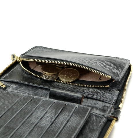 イギリスの湖水地方をイメージしたレザーコレクション『LAKELAND BRIDLE COLLECTION』のトラベルウォレット。湖の水面のように落ち着いたエンボス柄は上品な印象を演出。外側に備えられたDリングにコードを通すことで、盗難、紛失防止にもなり、ファッション性と機能性を兼備したデザインとなっています。