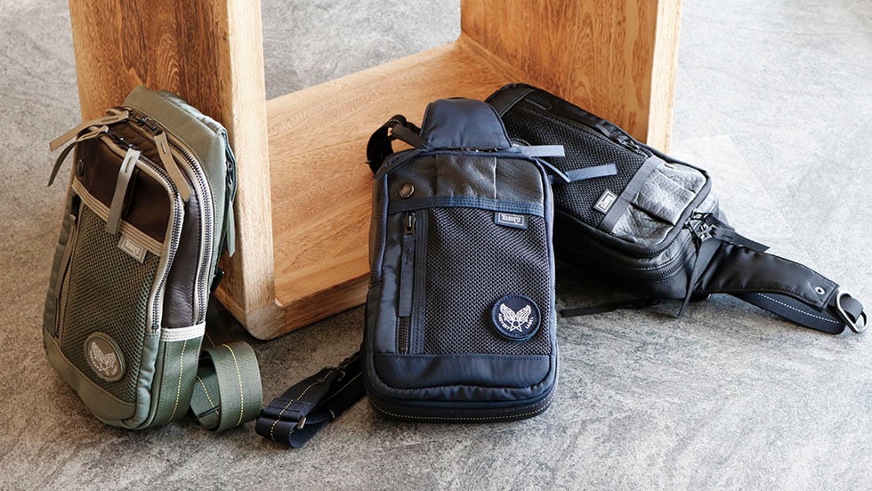 ハーヴェストレーベルの永年の集大成として誕生した「カスタム」シリーズ。マテリアルなどの特徴を最大限に活かし、Made In Japanで進化。フライトジャケットをイメージして開発したナイロン生地を使用し、ミリタリー感溢れるバッグとなっています。