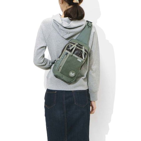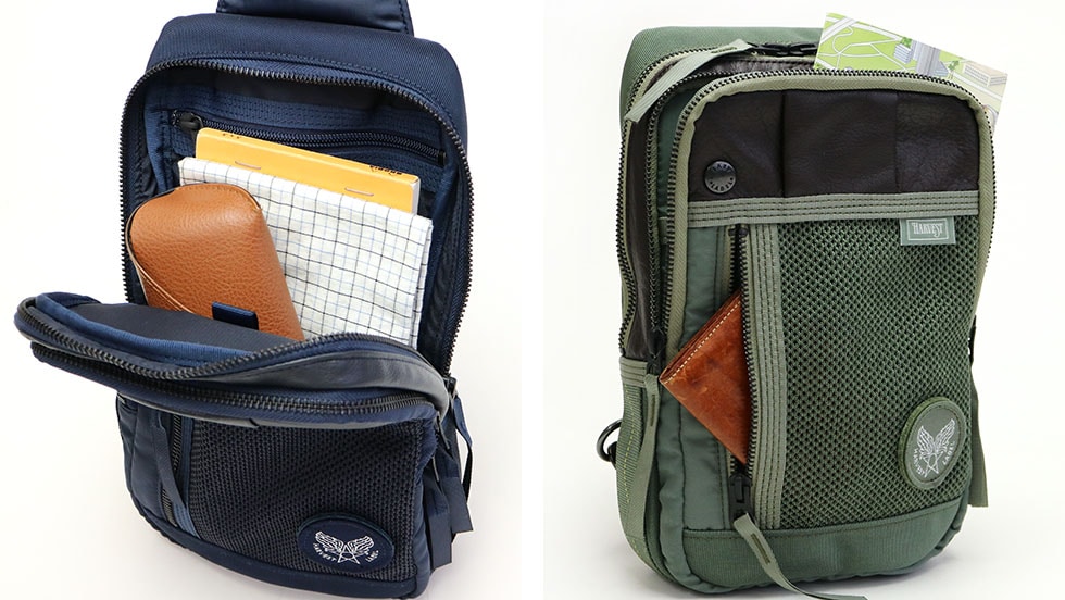 長財布も収納できて貴重品を入れて持ち歩くのに便利なサイズ感。内外に多数のポケットを設け、小さめながらも小分け収納に長けたデザインとなっています。また、正面のメッシュポケットは通気性にも優れ、ハンカチの収納などに最適です。