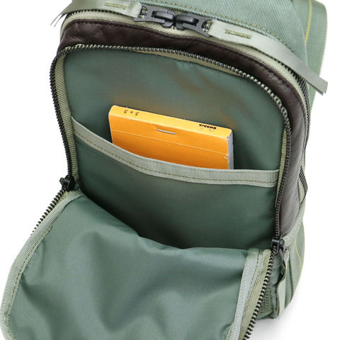 仕様 |[外側] ・ジップポケット(L)×1[ポケット(M)×1内蔵] ・メッシュジップポケット(S)×1 ・ジップポケット(S)×1 [内側] ・ジップポケット(L)×1 ・ベルクロポケット(M)×1 [付属品] ・ワッペン×1