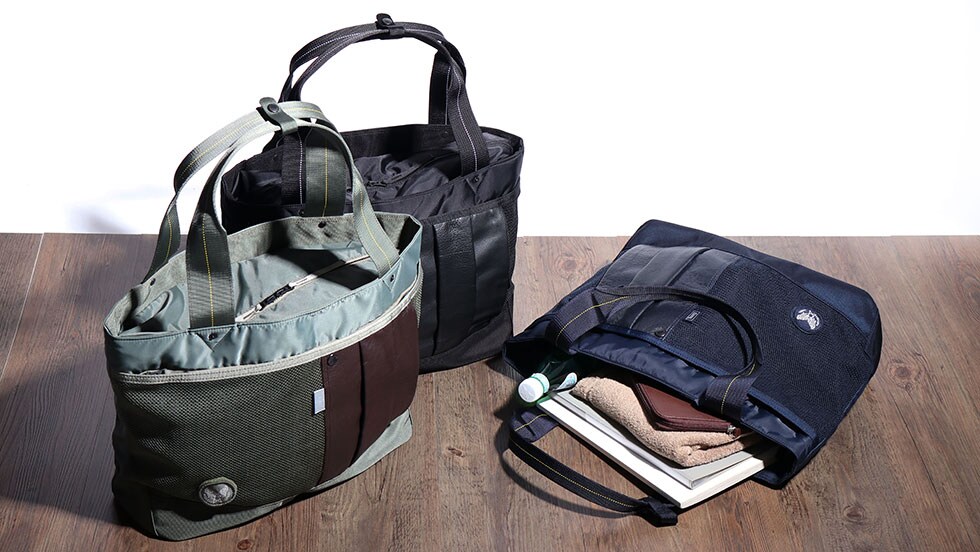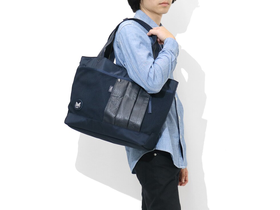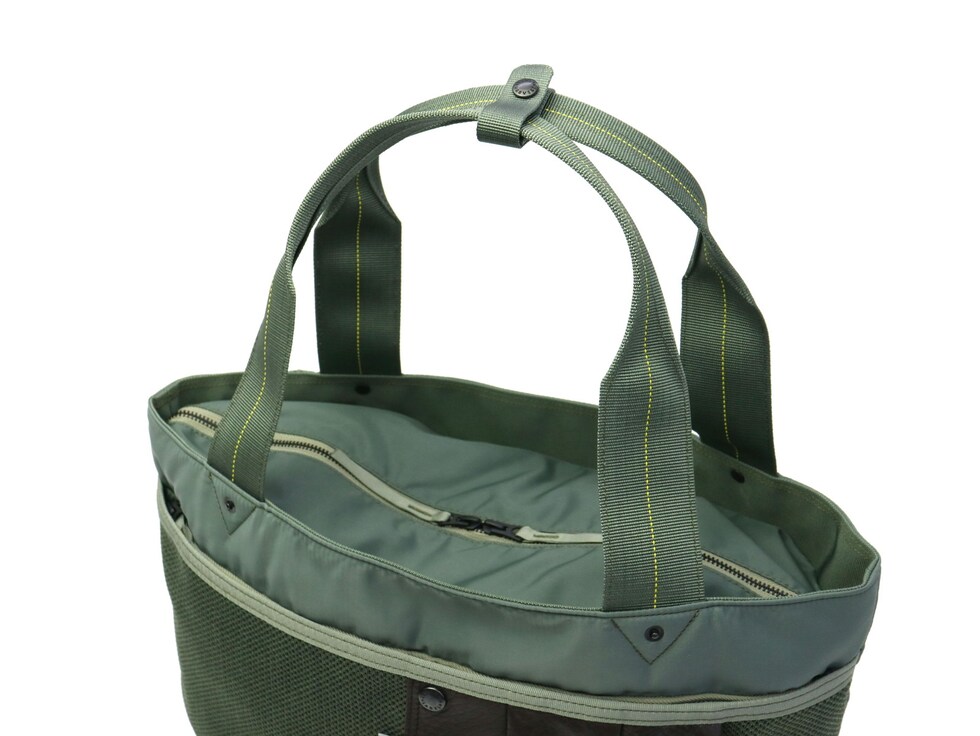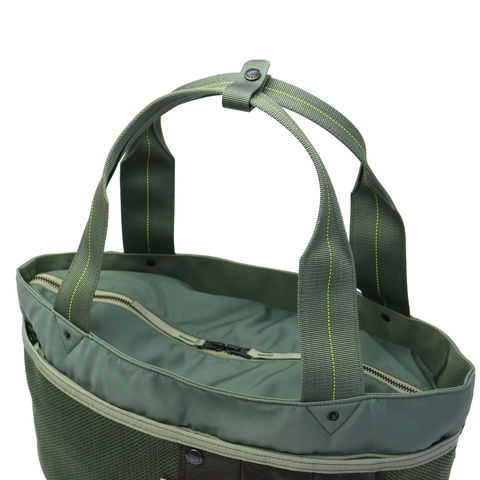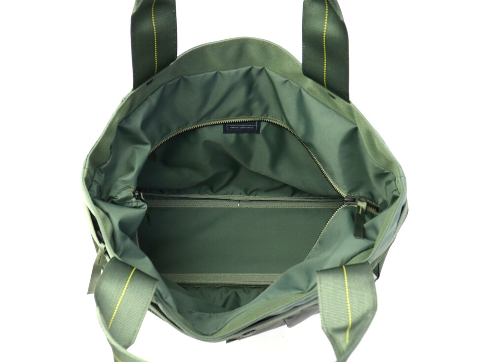 ハーヴェストレーベルの永年の集大成として誕生した「カスタム」シリーズ。マテリアルなどの特徴を最大限に活かし、Made In Japanで進化。フライトジャケットをイメージして開発したナイロン生地を使用し、ミリタリー感溢れるトートバッグです。