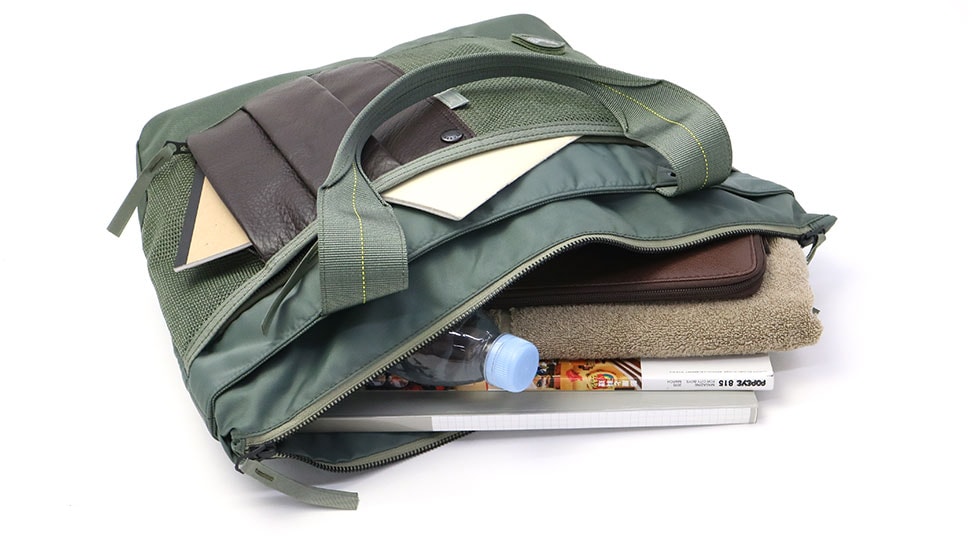 メインルームは使い勝手の良いA4サイズに対応しており、デイリーからアクティブシーンまで幅広くお使いいただけます。しっかりとした底マチを設けており、大きめのアイテムも安心して収納可能ですので通勤や通学にもおすすめです。また、多数のポケットを設け、小分け収納にも長けた設計となっています。