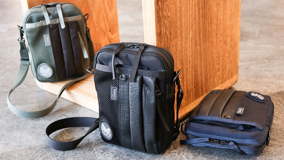 ハーヴェストレーベルの永年の集大成として誕生した「カスタム」シリーズのミニショルダー。マテリアルなどの特徴を最大限に活かし、Made In Japanで進化。フライトジャケットをイメージして開発したナイロン生地を使用し、ミリタリー感溢れるバッグとなっています。