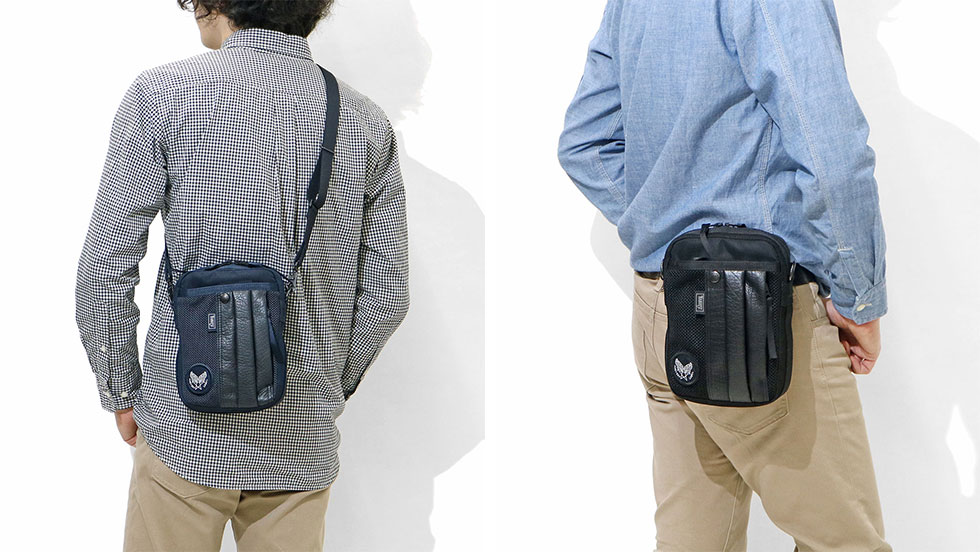仕様 |[外側] ・ジップポケット(L)×1 ・ジップポケット(M)×1 [内側] ・ベルクロポケット(L)×1 ・ジップポケット(L)×1 [付属品] ・ショルダーストラップ×1 ・ワッペン×1
