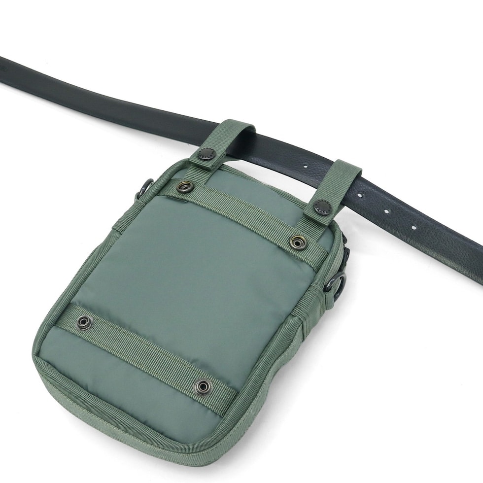 本体には取り外し可能なショルダーストラップを付属。ショルダーをはずしてポーチとして、背面のスナップボタンをはずし、ベルトループに通すことでウエストバッグとしても活躍。シーンやスタイルに合わせてお好みのスタイリングをお楽しみいただけます。