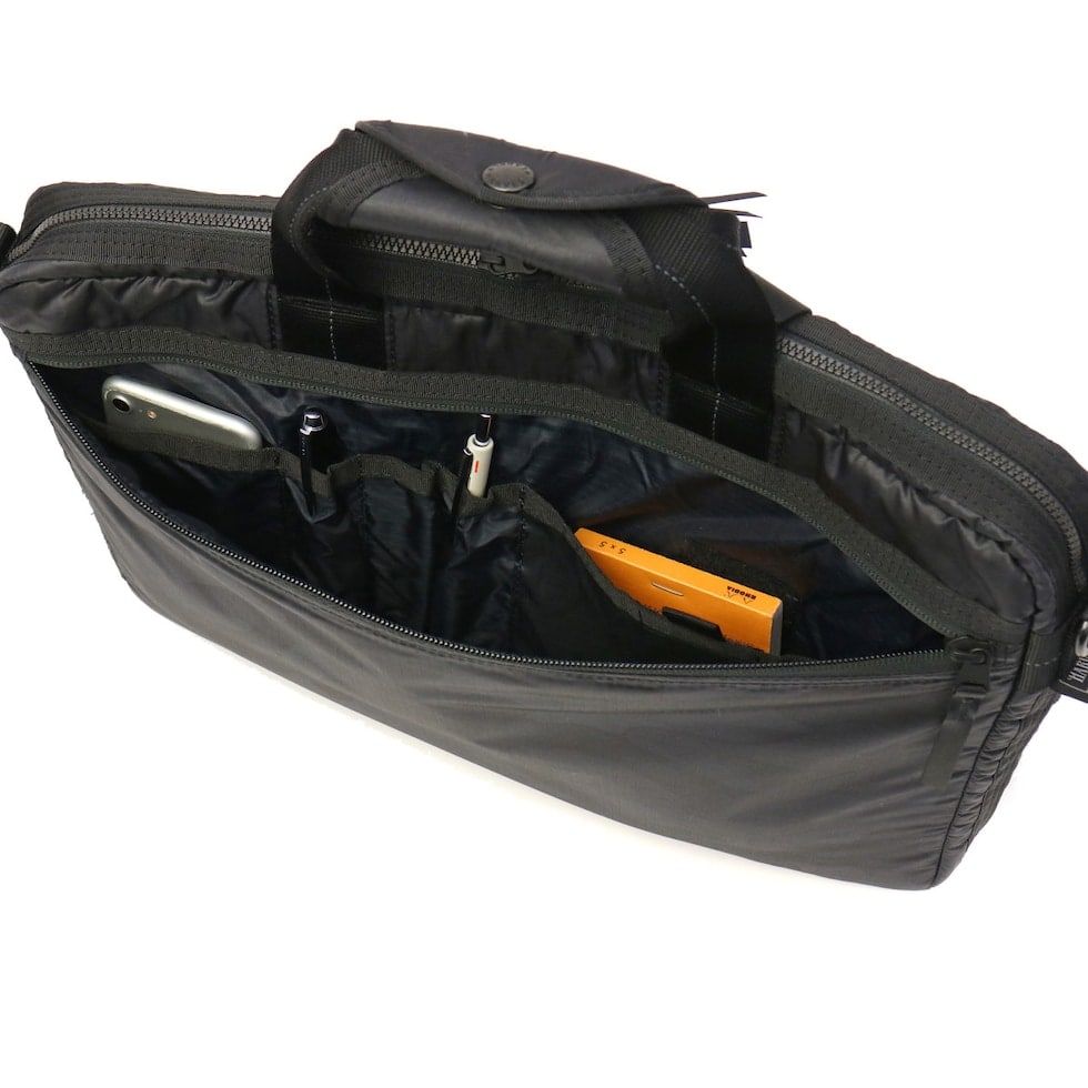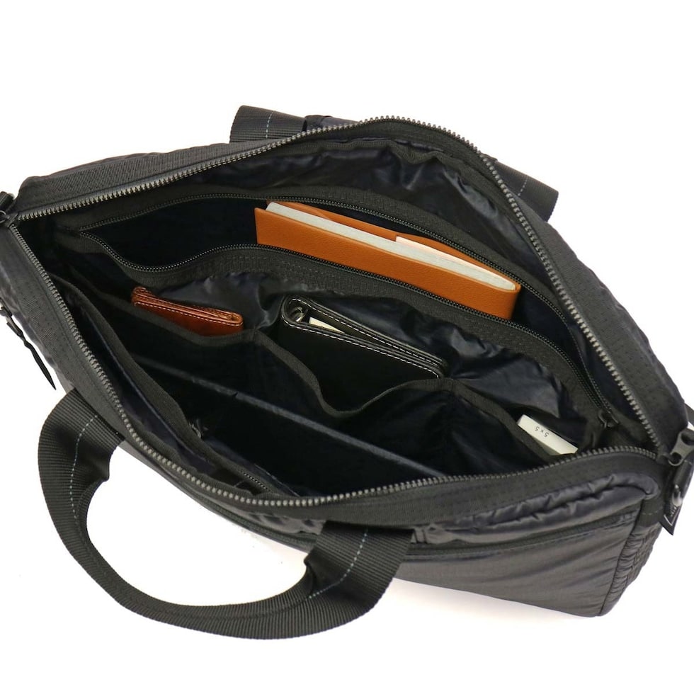 内装には書類や小物の仕分けができるポケットやPC収納など、多目的に使える収納部を豊富に搭載。なおかつ、外側のジップポケットには、通勤時に役立つオーガナイザー機能が備わっています。