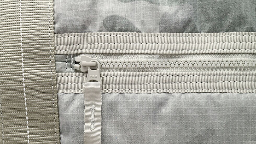 ファスナーは、柔軟性の高い本体生地に対応するため樹脂製のYKK社ビスロンファスナーを採用。軽量のスライダーは動きが良く、周囲の生地に負担をかけずスムーズに開閉することが可能です。
