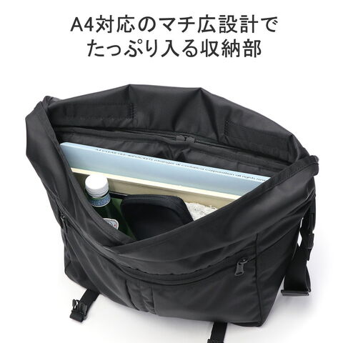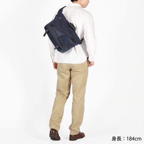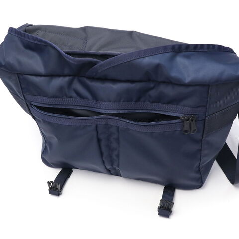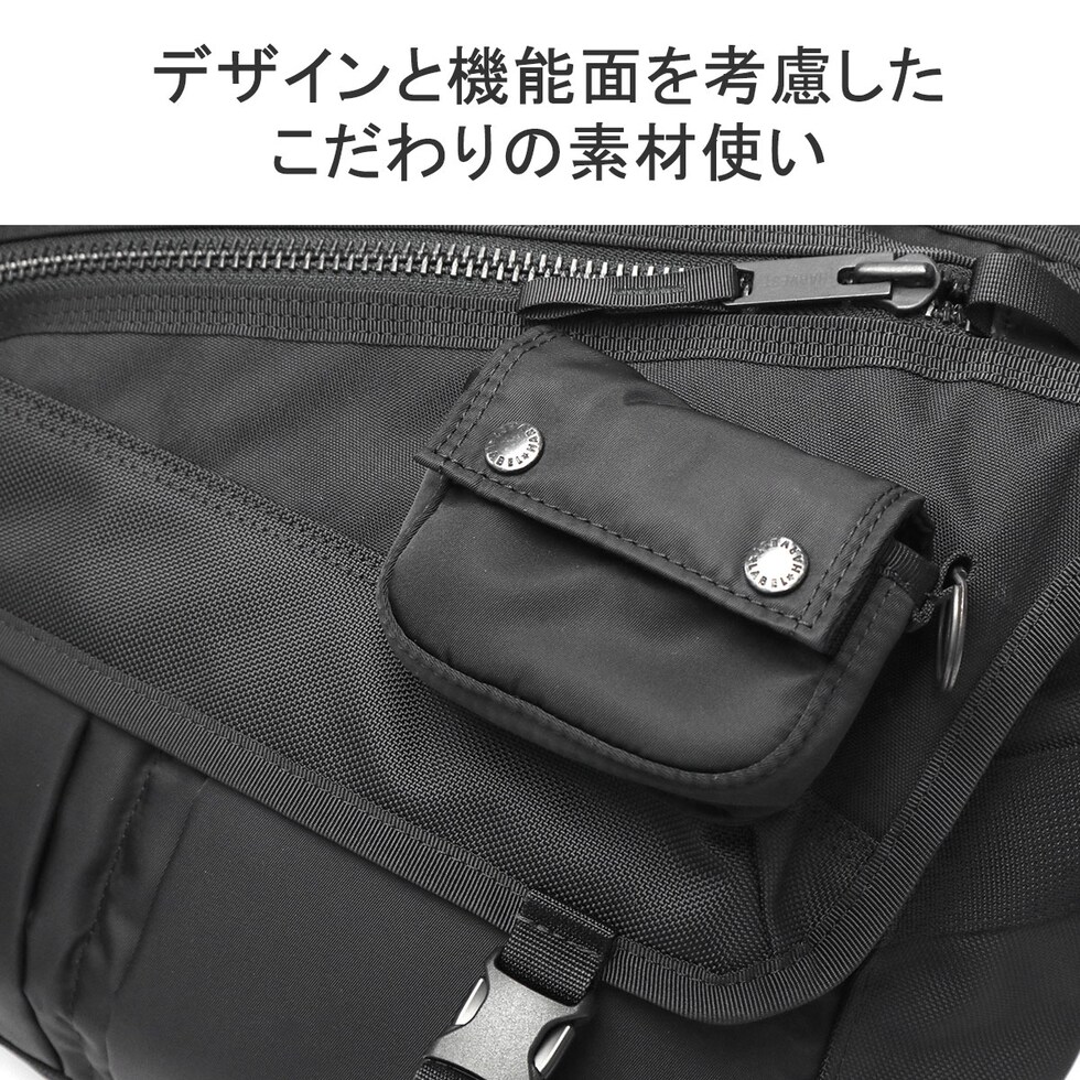 ショルダーストラップには太めのテープを採用し、パッドを厚く太くすることで負荷を感じさせにくい仕様になっています。付属の補助ストラップをショルダー部分からバッグ底辺に装着すれば、3点留め仕様になりよりホールド感を高めます。