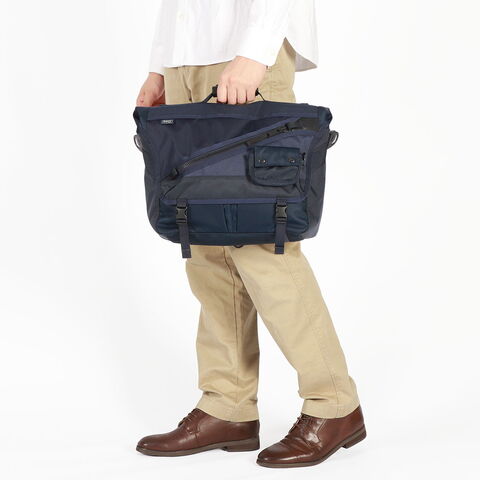 「RELOAD」は“ミリタリーと音楽の融合”をテーマに、新しいファブリックの組み合わせや現代のニーズに合わせた機能面のアップデートを図った新シリーズです。フロントに流れる無骨なファスナーポケットと、イヤホンサイズのミニポケットが目を惹くデザインで魅力的。細部のつくり一つ一つに「快適さ」へのこだわりを感じる、ビジネスシーンにも活躍する機能的なアイテムです。