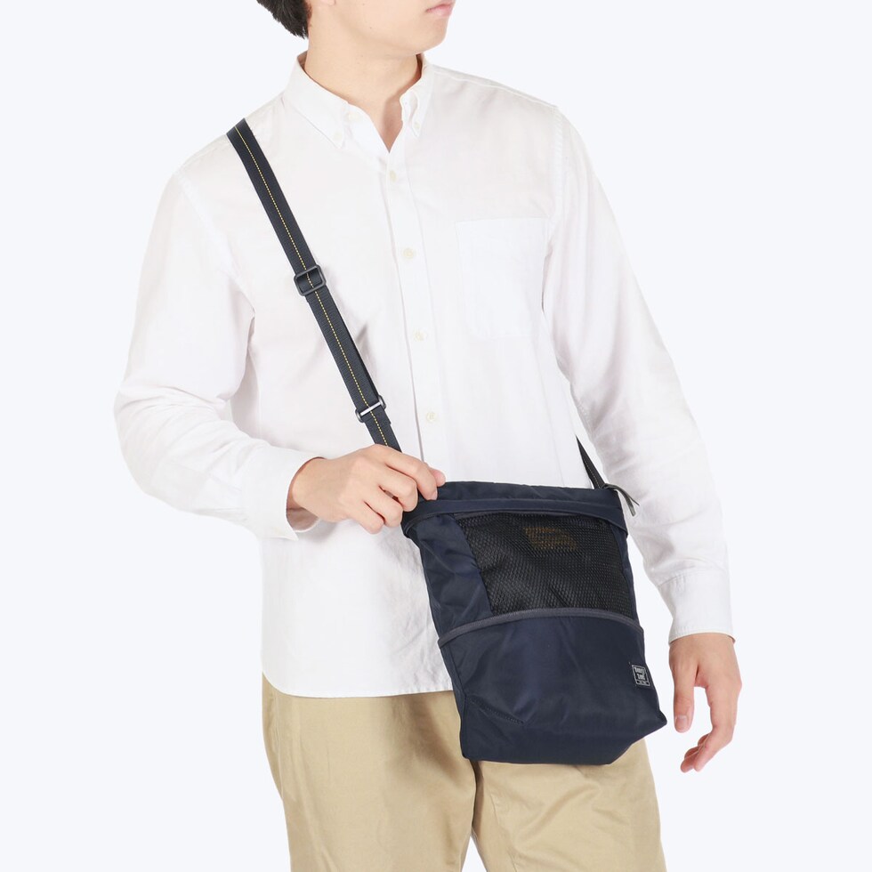ミニマルなデザインのなかにあらゆるシーンで活躍する機能性や、何処へでも持っていける多様性がコンセプトの『FLYER'S LITESPAN』。こちらはいつでもどこでも荷物の増減に対応可能なショルダーバッグです。拡張時にはA5サイズが収納できるサイズとなり、外側にメッシュポケットが現れる便利な仕様に。ちょっとした街歩きや普段から少し荷物の多い方にピッタリなアイテムです。