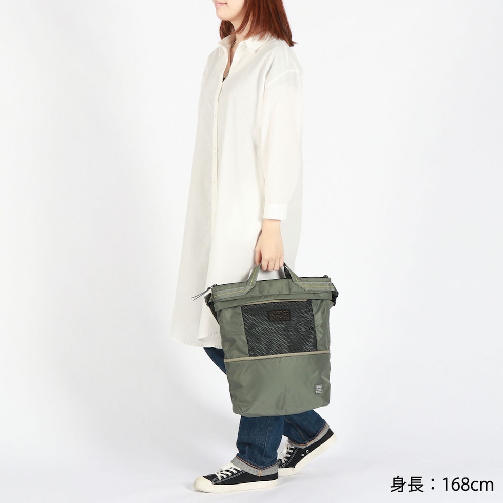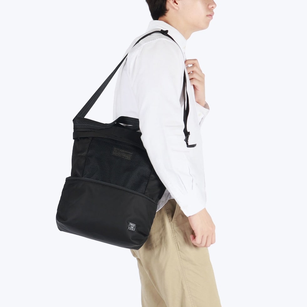ミニマルなデザインのなかにあらゆるシーンで活躍する機能性や、何処へでも持っていける多様性がコンセプトの『FLYER'S LITESPAN』。こちらはいつでもどこでも荷物の増減に対応可能な2WAYショルダーです。拡張時にはA4が収納できるサイズとなり、外側にメッシュポケットが現れる便利な仕様に。またメインファスナーは引手を両サイドに配置しているため、左右どちらからでもスムーズに開閉できます。