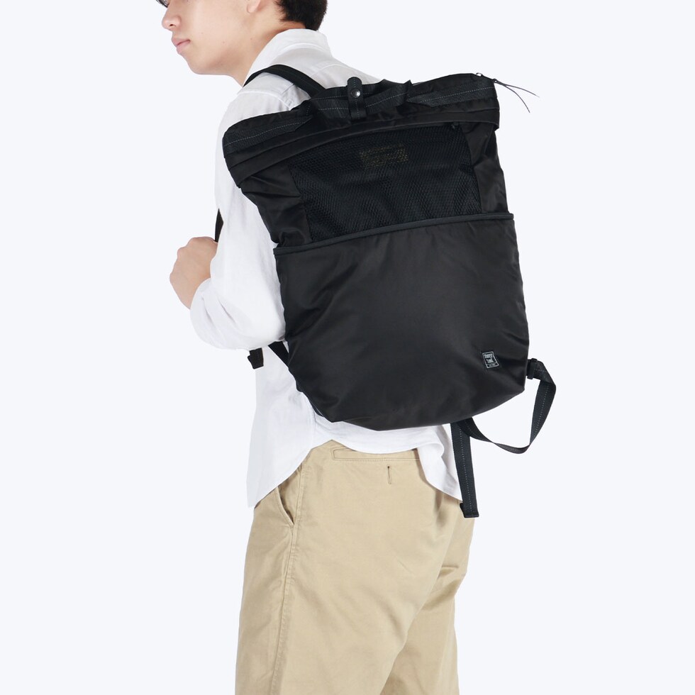 ミニマルなデザインのなかにあらゆるシーンで活躍する機能性や、何処へでも持っていける多様性がコンセプトの『FLYER'S LITESPAN』。こちらはいつでもどこでも荷物の増減に対応可能な2WAYリュックです。拡張時にはB4が収納できるサイズとなり、外側にメッシュポケットが現れる便利な仕様に。またメインファスナーは引手を両サイドに配置しているため、左右どちらからでもスムーズに開閉できます。