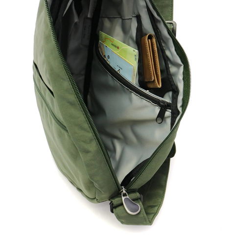 使いやすさを追求したマルチポケット構造で、沢山の荷物を入れてもアイテムごとにすっきり収納できます。貴重品の収納に便利なジップポケットやペットボトルなどの収納に便利なサイドポケット、背負ったままでも出し入れがしやすい斜めポケットなどが充実しています。