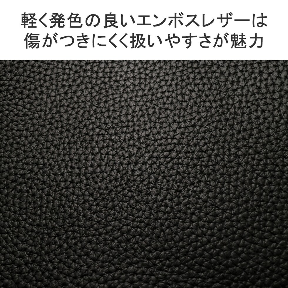 素材には軽さと発色の良さが特徴のエンボスレザーを採用。自然なシボを再現した型押しを施しています。表面に傷が付きにくく、タフで扱いやすいのが魅力的。経年変化による色の変化が生じにくく、綺麗なまま使い続けられるレザーです。