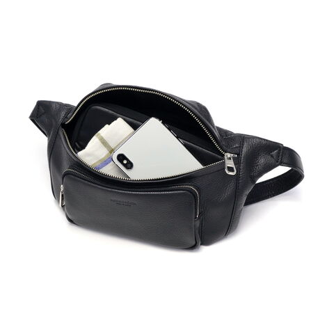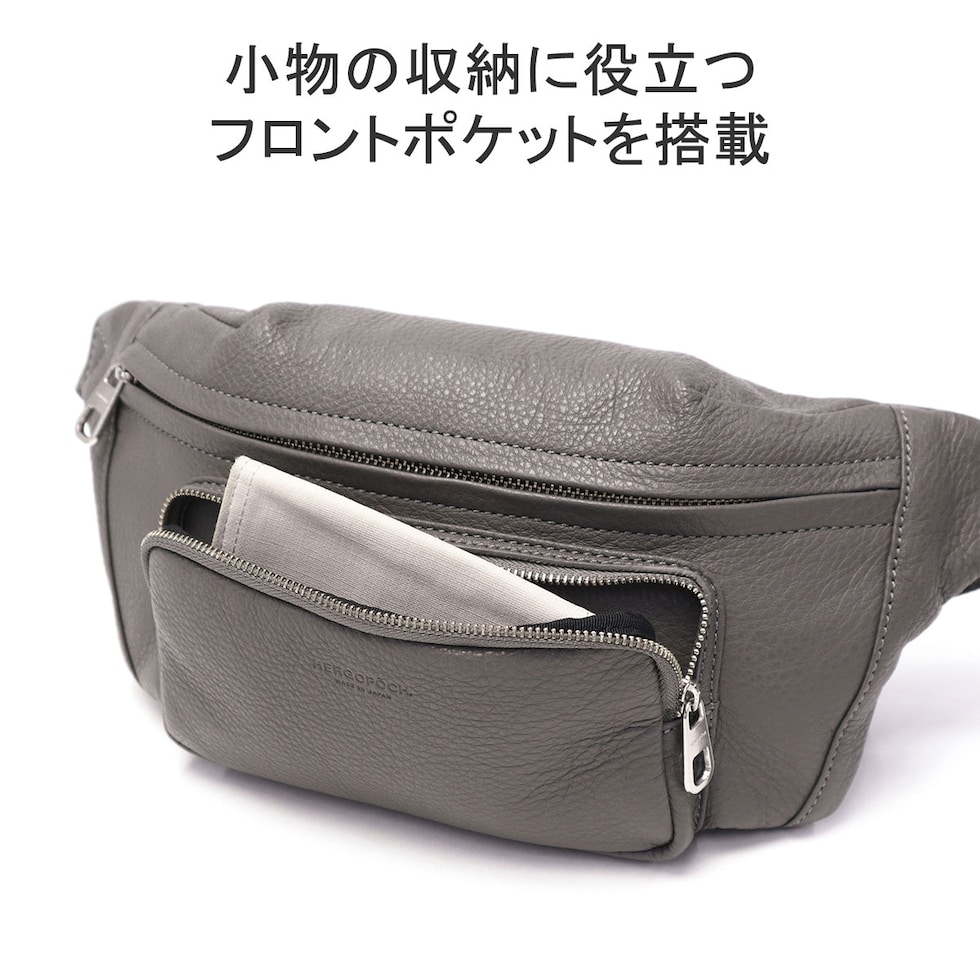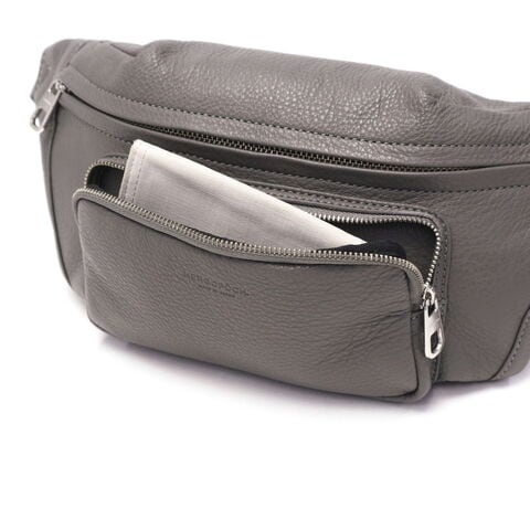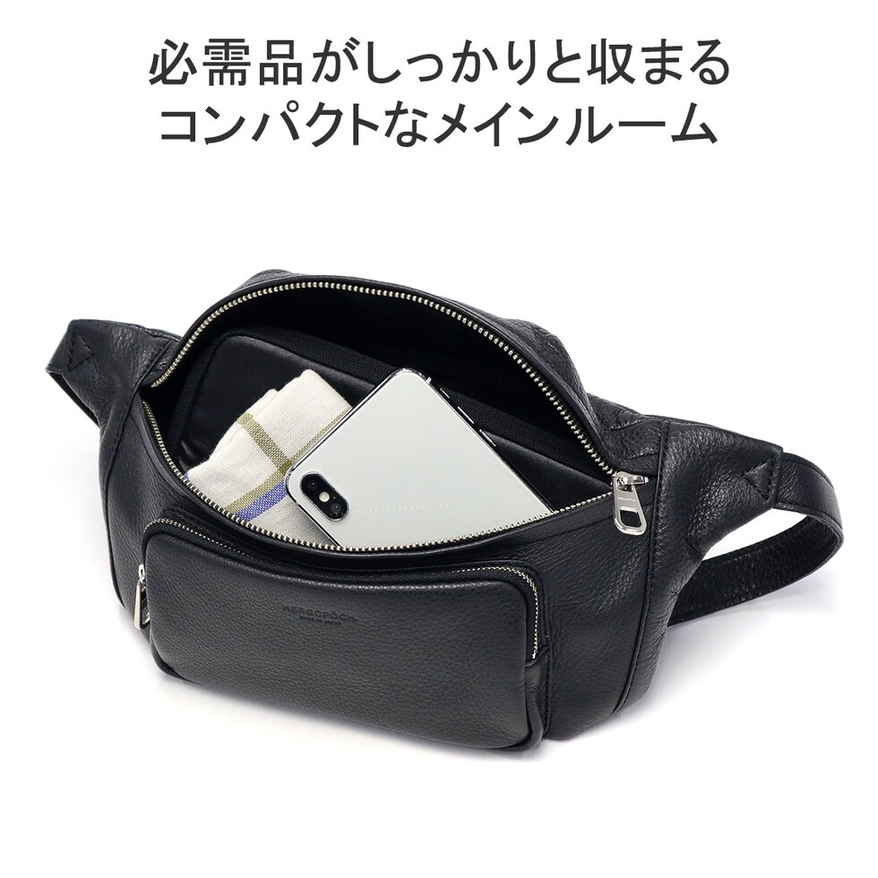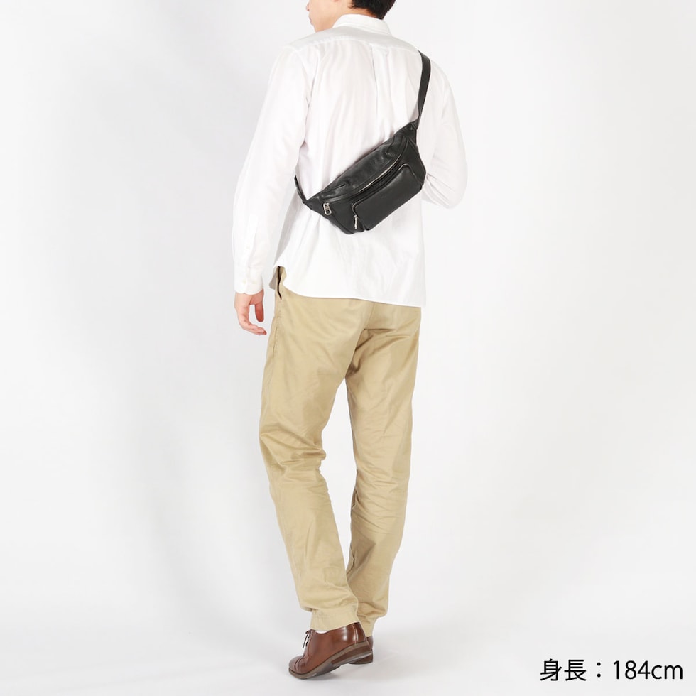 HERGOPOCHの使用するレザーで最もソフトなシュリンクレザーを使用した『TC/(TOCCABENE:トッカベーネ)』シリーズのウエストボディバッグ。本体は、長財布やスマートフォンがゆったり収まるサイズ感です。バッグ背面にはディテールを施していないため、体にしっかりフィットし快適に持ち運びいただけます。
