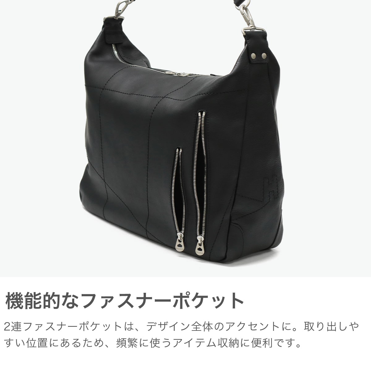 ブランド設立20周年に際し、過去の名作を純国産レザーで復刻した2WAYバッグ。取り外し可能なハンドル&ショルダーストラップで、シーンに応じて持ち方が選べます。外装の2連ファスナーや、全体に走らせたステッチなど、アイコニックなディティールも魅力です。