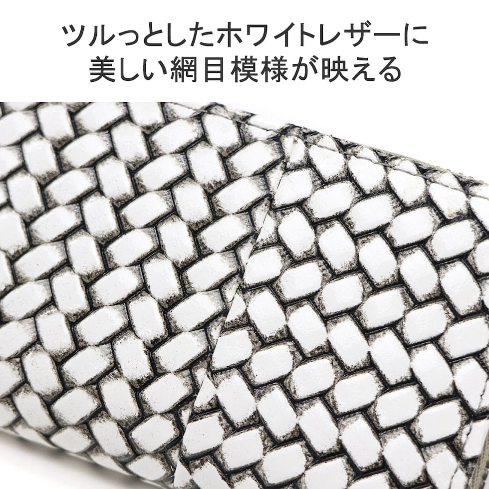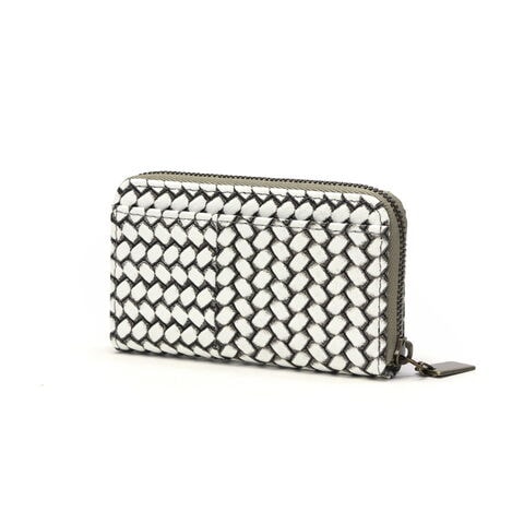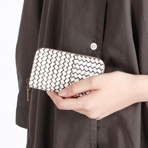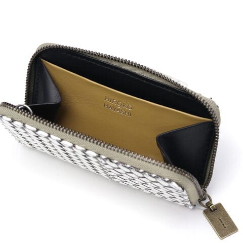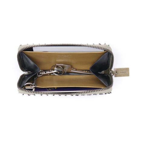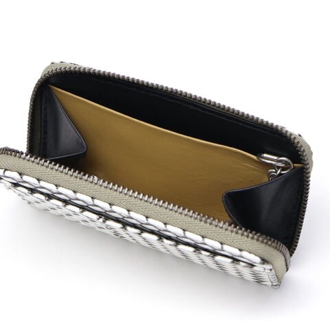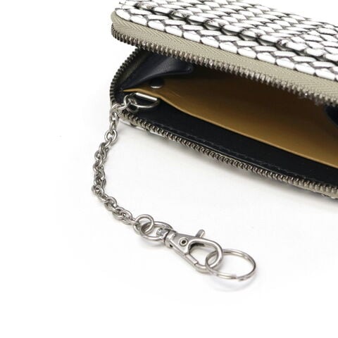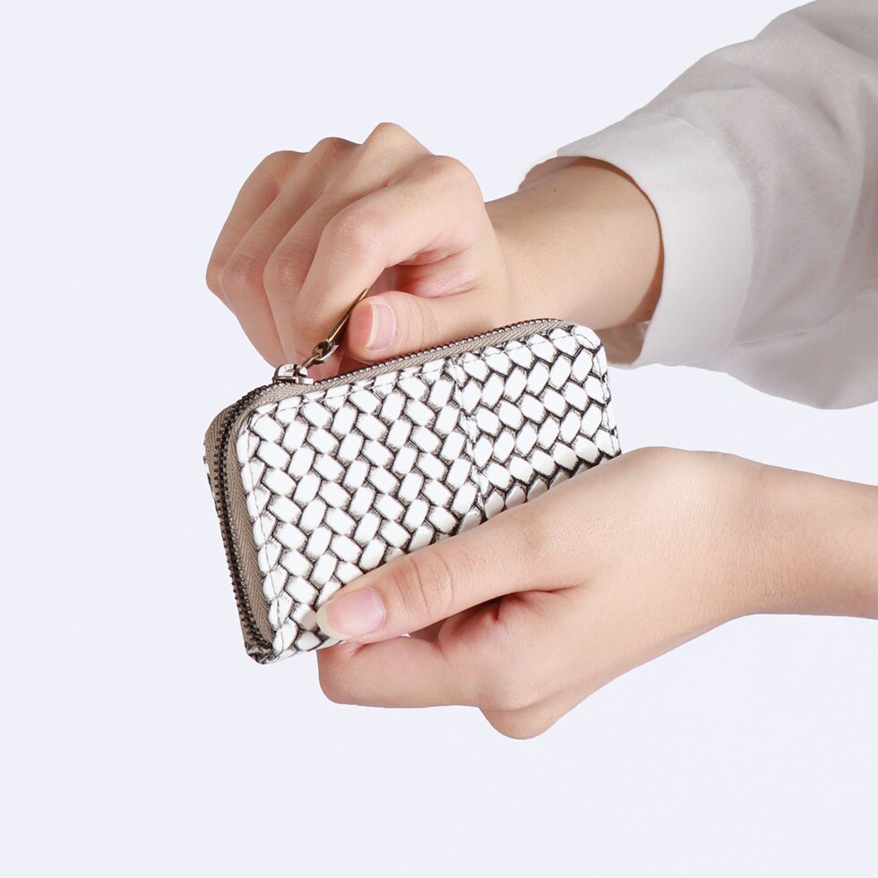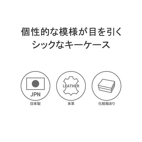 編み目柄が特徴的な『OTTICA/オッティカ』シリーズのキーケース。型押しを施した牛革に墨色の染料を塗り、最後にふき取ることで味を出しています。内側にチェーン付きのキーリングを備え、スマートに鍵の出し入れが可能。ラウンドファスナー式でしっかりと閉まるので、小銭入れとしても使えます。