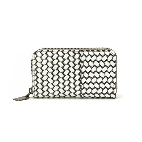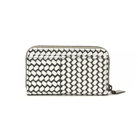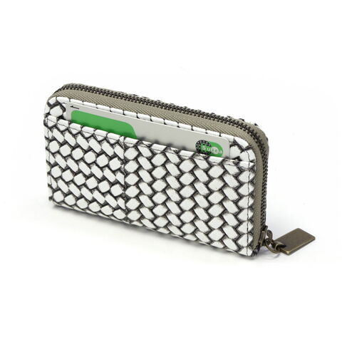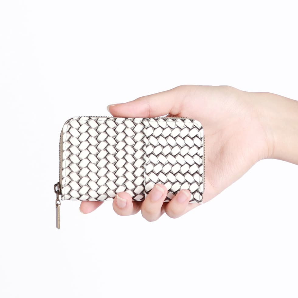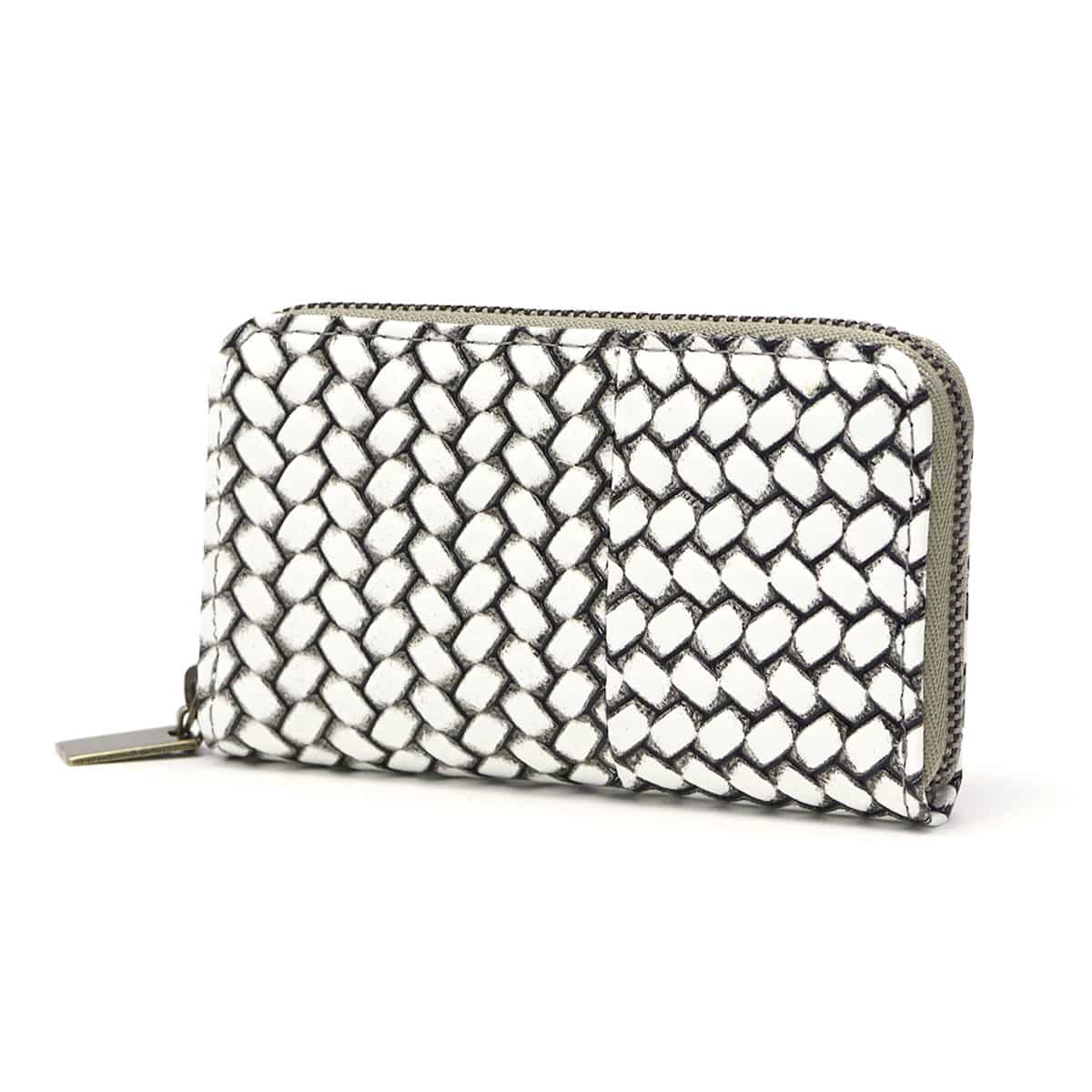 編み目柄が特徴的な『OTTICA/オッティカ』シリーズのキーケース。型押しを施した牛革に墨色の染料を塗り、最後にふき取ることで味を出しています。内側にチェーン付きのキーリングを備え、スマートに鍵の出し入れが可能。ラウンドファスナー式でしっかりと閉まるので、小銭入れとしても使えます。