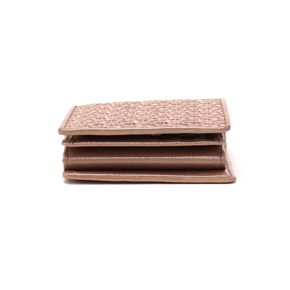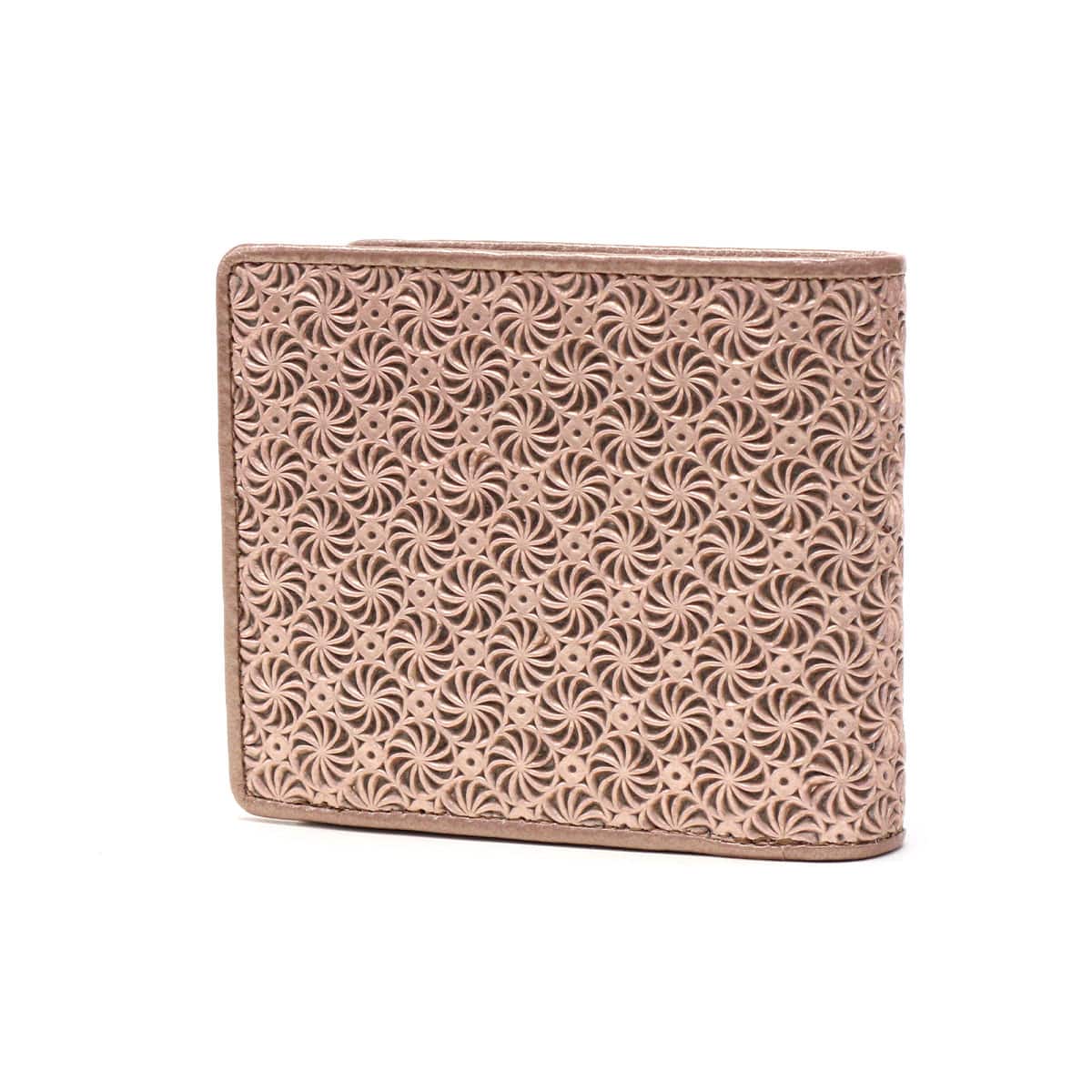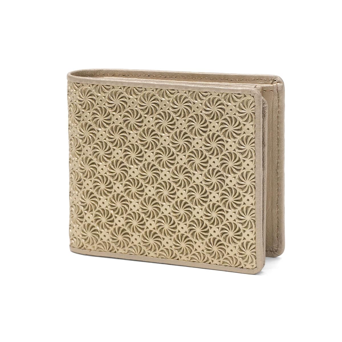 独特なスクリューデザインが人気の『GIRASOLE/ジラソーレ』シリーズの二つ折り財布。牛革に型押しと型抜きを施した、上品でいて軽やかな仕上がりが特徴です。シンプルながらも、開くと札入れが二股に分かれカード入れが隠れる設計。エレガンスと実用性を兼ね備え、日常のスタイルを一層引き立てます。